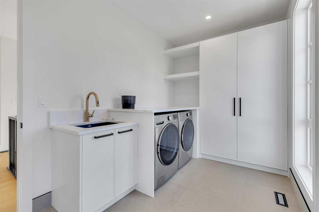 Equipped with two AIR CONDITIONING units and HEATED FLOORS IN BASEMENT and primary ensuite, this home ensures year-round comfort. Innovative technology features, including Alexa voice commands for lighting and security, indoor and outdoor speakers, and a Wi-Fi irrigation system, elevate this residence to modern luxury. Not only does this home provide unrivalled amenities, but its location is equally enticing. Close to shopping, parks, and esteemed schools from preschool to senior high. Its also close to MRU