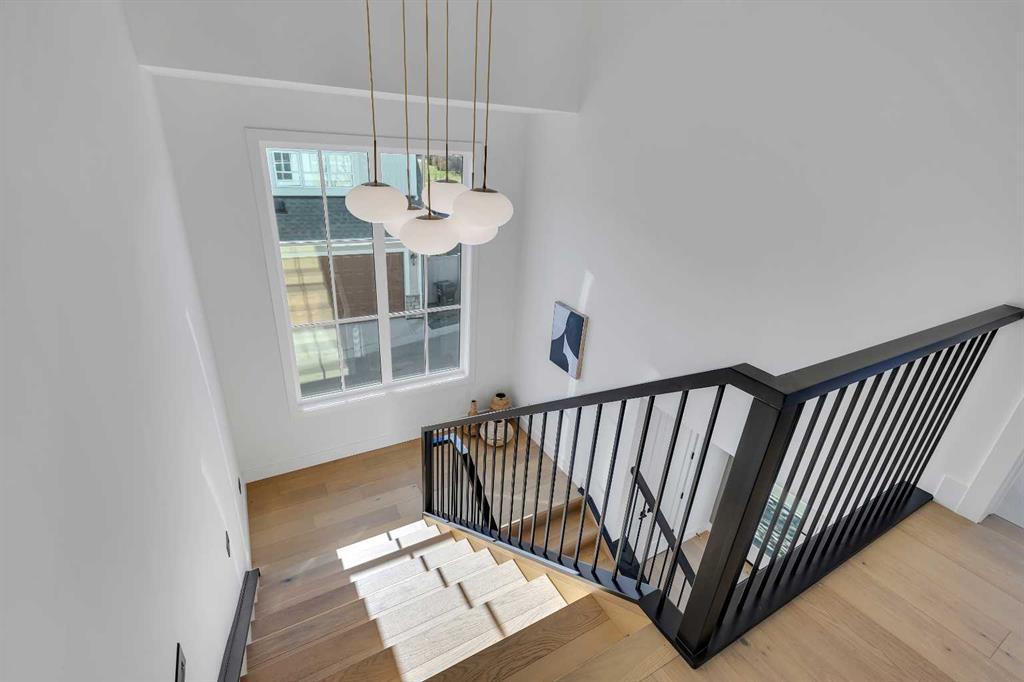 The home features a FULLY FINISHED THREE-CAR GARAGE, complete with a sleek EPOXY FLOOR and fresh paint, ensuring a polished look for your vehicles. The mechanical room is also finished with Epoxy floor, adding to the overall quality and attention to detail. Thoughtful STAIR LIGHTING enhances the beauty and functionality of the home, providing a warm glow as you navigate the HARD WOOD ON THE STAIRWAYS.