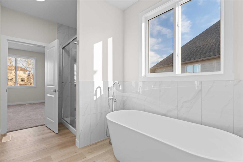 This is a deluxe fully finished walkout bungalow with a triple attached garage and a premium location backing onto a park and pond in Montrose. It is 1505 square feet and has a great view. It has an open and modern feeling with a well planned kitchen that includes cabinets to the ceiling, quartz counters, walk-in pantry, premium tiles, and an under-mount sink and all appliances included. There are three bedrooms plus a fourth bedroom or office. The primary bedroom suite has a great view over the pond and has a gorgeous ensuite with a six foot shower, a freestanding soaker tub, and a walk-in closet with custom cabinetry. The walkout level also has large family room with a wet bar. The main floor has a covered 17’ x 10’ deck and the walkout level has a 17’ x 10’ patio. Other extras include a fully drywalled garage, Hardieboard exterior, and a full concrete front step. Click the multimedia link for a virtual interactive 3D tour, plus floor plans and professional pictures.