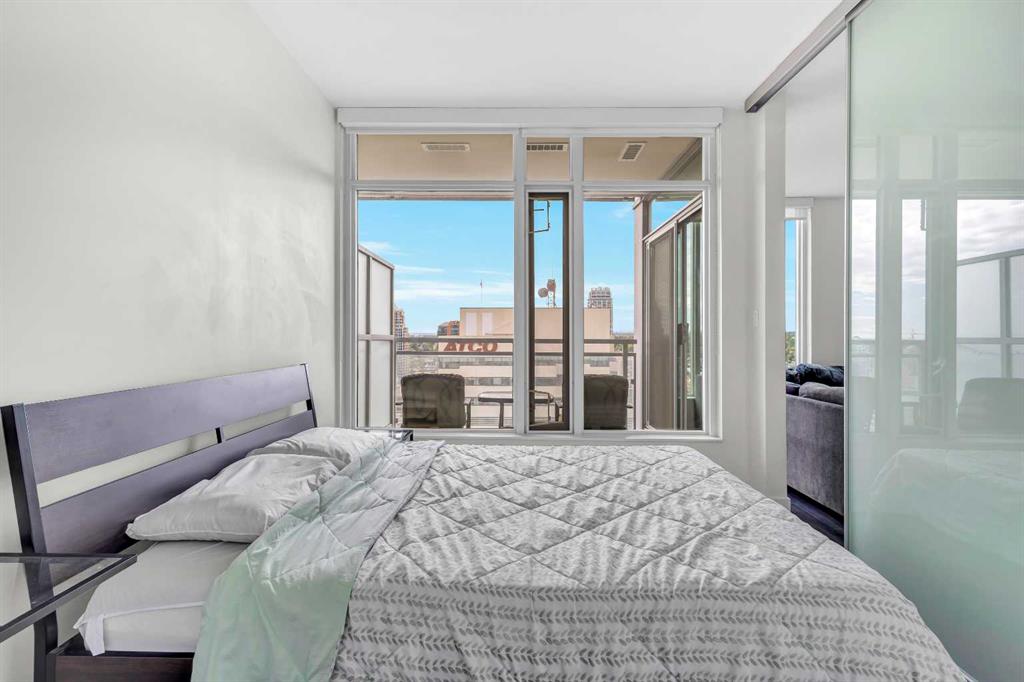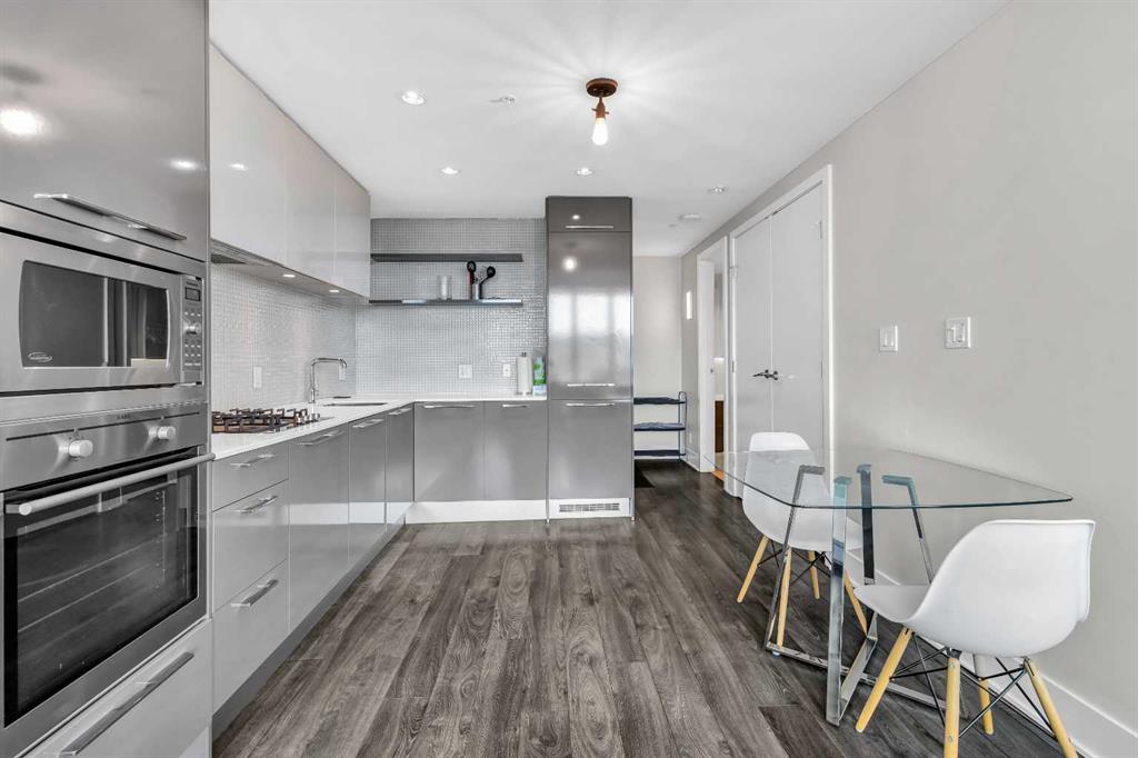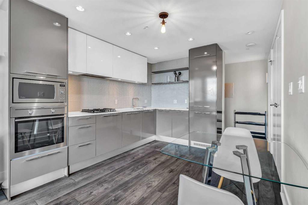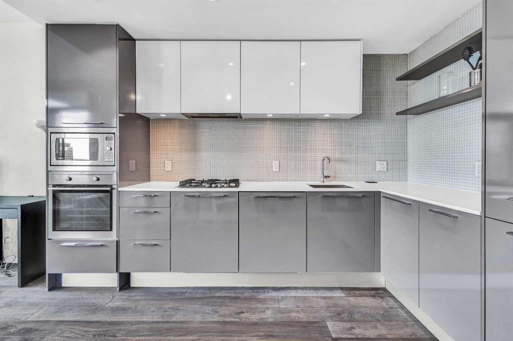 Welcome to elevated urban living in the heart of downtown Calgary. This modern 1-bedroom unit is located on the 21st floor of the Mark on 10th building, offering stunning south-facing views, 9-foot ceilings, and floor-to-ceiling windows for abundant natural light. The open-concept layout includes wide plank flooring, full-height Nobilia cabinetry, quartz countertops, gas cooktop, Liebherr built-in appliances, and a pull-out spray Kohler faucet. The unit comes with a titled heated underground parking stall and a separate out-of-suite storage locker. The Mark on 10th offers premium amenities including a rooftop hot tub, patio with BBQ and firepit, gym, steam room, sauna, owners’ lounge, garden terrace, secure bike storage, car share, and dog wash area. A perfect opportunity for professionals or investors seeking quality living in the Beltline.
