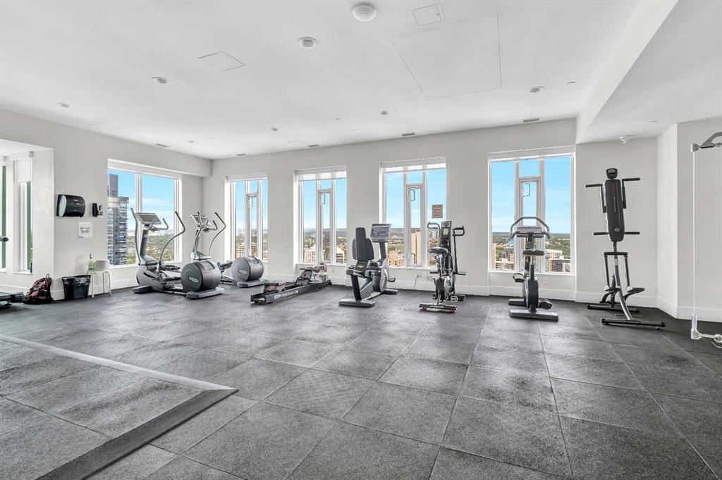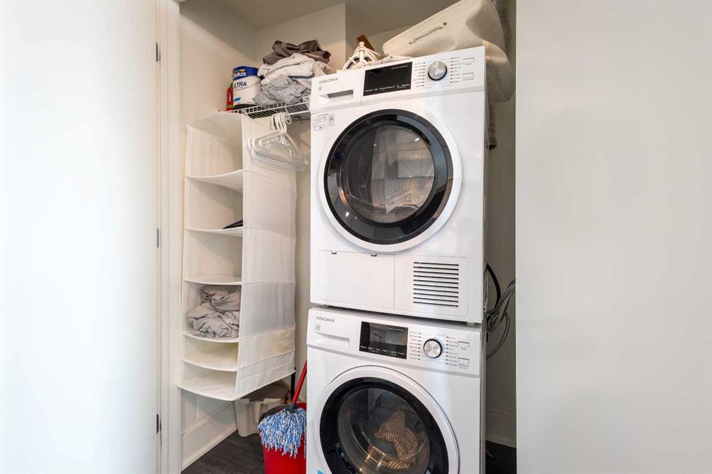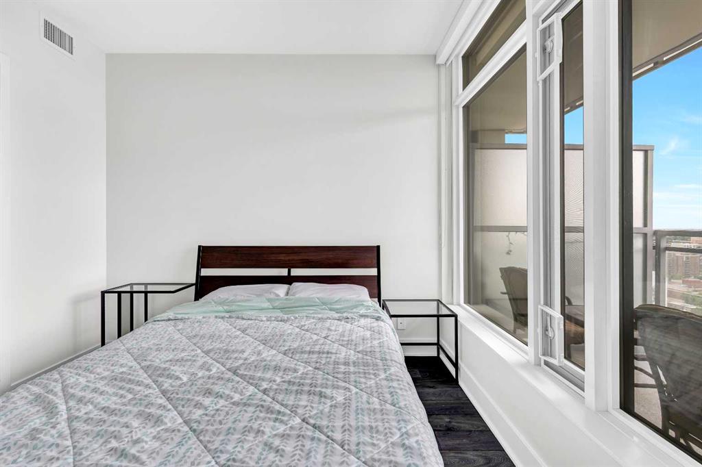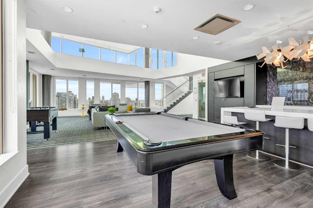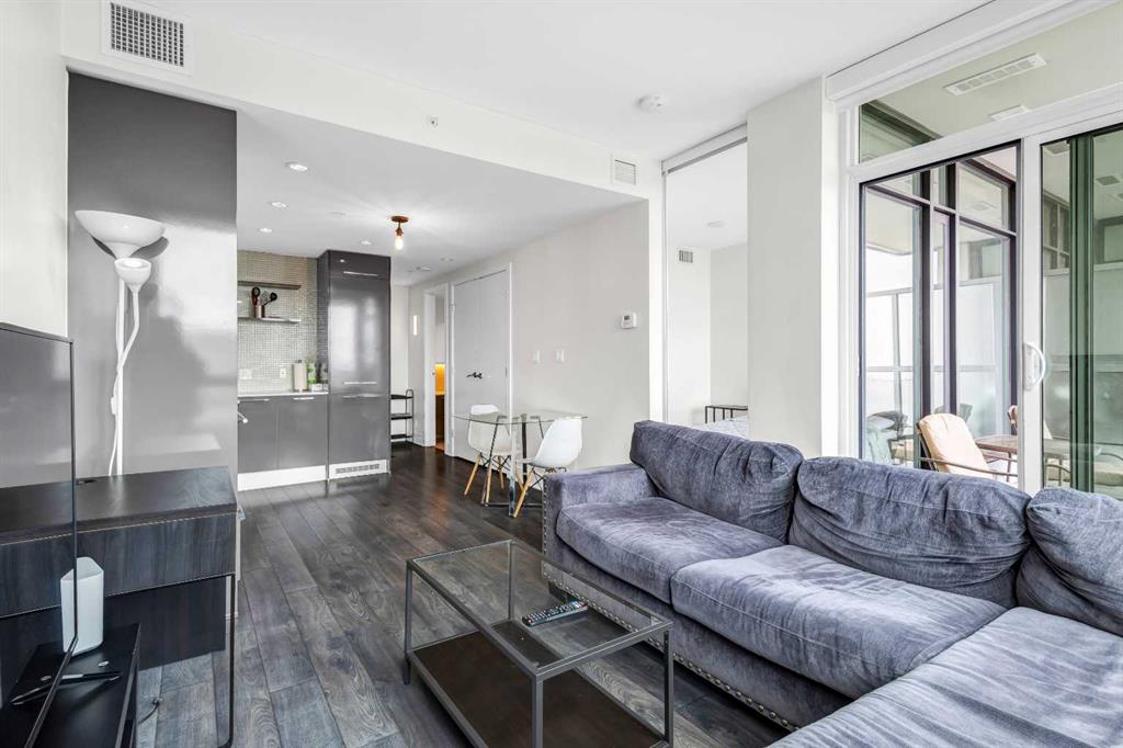 Welcome to elevated urban living in the heart of downtown Calgary. This modern 1-bedroom unit is located on the 21st floor of the Mark on 10th building, offering stunning south-facing views, 9-foot ceilings, and floor-to-ceiling windows for abundant natural light. The open-concept layout includes wide plank flooring, full-height Nobilia cabinetry, quartz countertops, gas cooktop, Liebherr built-in appliances, and a pull-out spray Kohler faucet. The unit comes with a titled heated underground parking stall and a separate out-of-suite storage locker. The Mark on 10th offers premium amenities including a rooftop hot tub, patio with BBQ and firepit, gym, steam room, sauna, owners’ lounge, garden terrace, secure bike storage, car share, and dog wash area. A perfect opportunity for professionals or investors seeking quality living in the Beltline.