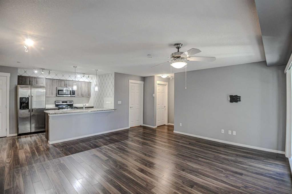 Embrace a peaceful, low-maintenance lifestyle in this beautifully designed walkout end unit perfectly positioned just steps from Wildflower Pond and Copperfield’s surrounding green spaces. Offering a seamless blend of modern comfort and natural serenity, this bright, move-in-ready home welcomes you with an open-concept layout and timeless design. The kitchen impresses with quartz countertops, stainless steel appliances, rich cabinetry, and chic feature walls, all centered around a peninsula island ideal for casual dining or entertaining. Gleaming laminate floors flow throughout the main living areas, creating an easy sense of connection between spaces. The adjacent living room is bright and spacious, inviting relaxation and gathering, while large patio doors extend the living space to a covered outdoor area perfect for morning coffee, summer barbecues or simply enjoying the peaceful community setting. This thoughtful walkout design also offers convenient direct access for guests or quick strolls to nearby parks and paths. A generous primary bedroom with a private 3-piece ensuite provides a personal retreat, complemented by a second bedroom and a full 4-piece bathroom for guests, roommates or a home office. In-suite laundry adds everyday convenience. A EXTRA LARGE titled underground parking stall and assigned storage locker offer practical function, while visitor parking ensures easy hosting. Located in the family-friendly, amenity-rich community of Copperfield, residents enjoy skating rinks, tennis courts, playgrounds and an active community centre with year-round events. Scenic ponds, parks and extensive walking paths create a tranquil environment with nature right outside your door. When you do venture out, shopping and dining are close at hand in McKenzie Towne and South Trail Crossing, with quick access to both Deerfoot and Stoney Trail for effortless commuting. Combining modern design, thoughtful layout and an unbeatable location this inviting walkout unit is ready to welcome you home!