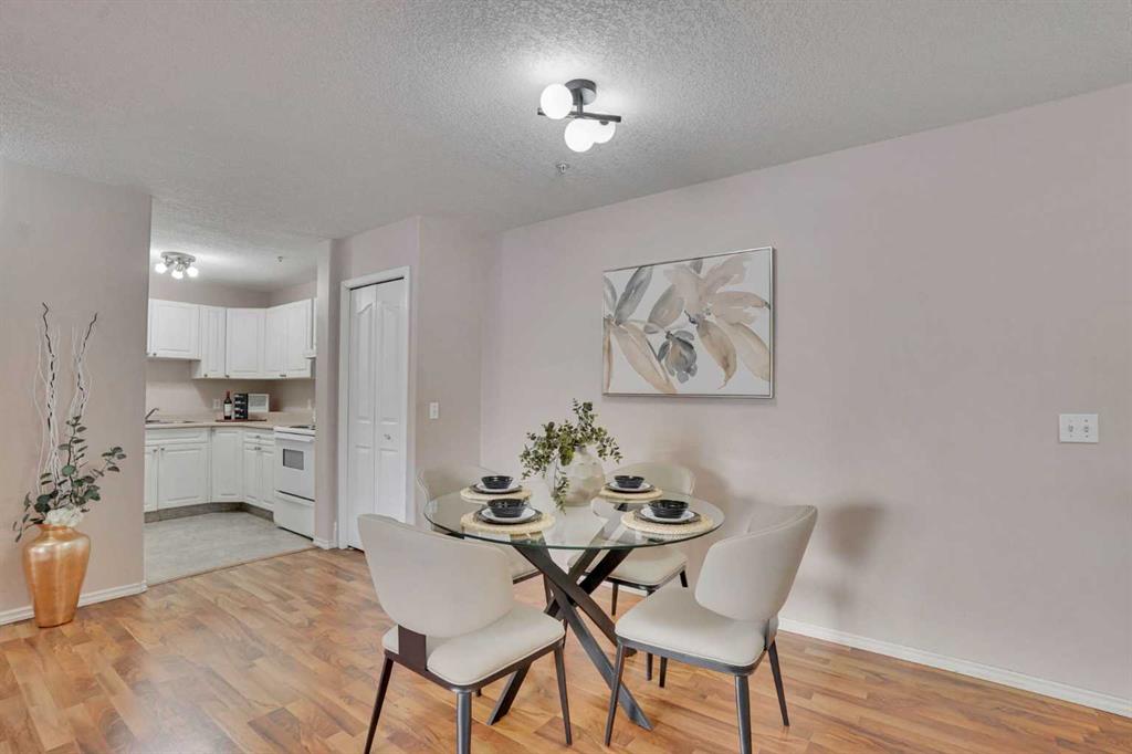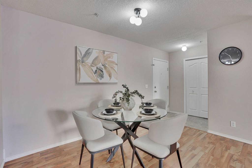 The OPEN FLOOR PLAN creates a bright and spacious feel, seamlessly connecting the kitchen, dining, and living areas. The primary bedroom includes its own full ENSUITE, while the second bedroom is well-sized and conveniently located near the second bathroom. Additional features include in-suite laundry and one assigned parking stall.