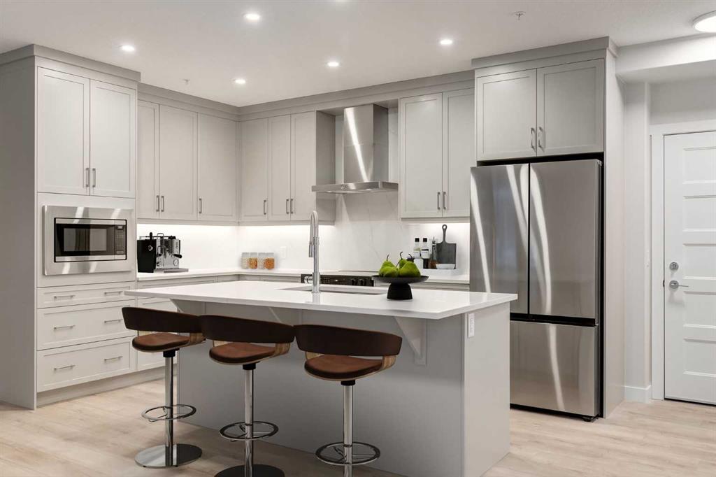 The Whitney is an impeccably designed boutique condo building, situated in the esteemed Aspen Park/Springbank Hill area. Your new home graces one of the finest locations, nestled beside a protected environmental reserve (ravine) that winds through the community, offering extensive recreational walking paths. The Whitney boasts stunning mountain, prairie, and community vistas, with Aspen Landing just a 5-minute stroll away and Downtown a quick 10-minute drive. Your new 2 bed/2 bath LIBERTY unit offers 1187 sq.ft. of architectural measurement (1093 sq.ft. RMS measurement) of living space, inclusive of en-suite laundry, open concept living, a large patio, air-conditioning, titled underground parking (additional stall is available for purchase), walk-in separate storage unit, luxury vinyl plank flooring, quartz counters, custom cabinetry, designer tile, and stainless appliances. Developed by Cove Properties, one of Calgary’s most respected multifamily builders known for their dedication to quality craftsmanship. An annual HOA fee is anticipated, though not yet finalized. Please note that all photos shown are from Cove Properties’ previous show suites and are intended to illustrate the level of interior finishes that can be expected at The Whitney. BUILDING IS COMPLETE AND MOVE IN READY! This is a limited opportunity to own in one of Calgary’s most desirable southwest communities. Contact your agent today to arrange a private viewing of the unit.