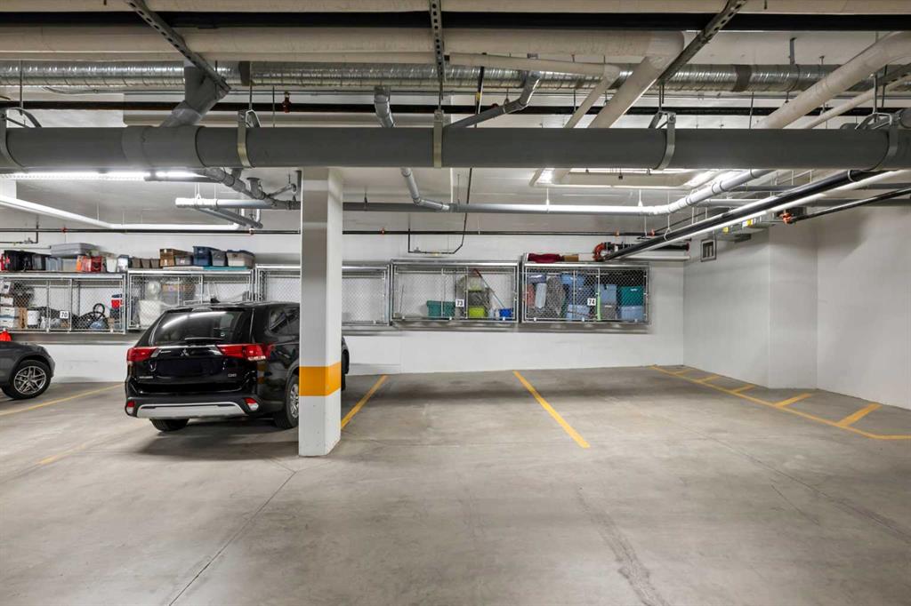 Welcome to The Chateaux! Airdrie’s premier 40+ condo building in the wonderful community of Kings Heights. This complex offers sophistication, pride of ownership, and unbeatable proximity to all amenities. Upon entering this unit, you’ll be impressed by the abundance of natural light, enhanced by its south-facing exposure. You’re greeted by beautiful tile flooring that leads into a welcoming front entrance, where you’ll find a spacious coat closet with built-in shelves, perfect for storing coats, keys and shoes. To your right is the kitchen, you will love not only the generous counter space but also the ample cabinetry this layout offers. The kitchen features granite countertops, a large sink, a lazy Susan in the corner cabinet, a garburator and a counter overhang for bar stool seating, ideal for casual meals. Stainless steel appliances and a well-appointed pantry with pull-out drawers complete this thoughtfully designed space. Moving into the living room, enjoy a spacious layout complemented by a beautiful custom California Closets media centre that is perfect for your TV, artwork and storage needs. Stay cool in the summer with a wall-mounted A/C unit. Your southwest-facing balcony offers year-round afternoon sun, making it the perfect place to enjoy your morning coffee, tea or an evening drink. This balcony was upgraded at the time of construction with glass panels and a gate, offering convenient direct access to the landscaped common areas, especially great for pet owners. The primary bedroom is a dream, with a large south-facing window and a spacious walk-through closet that leads into your ensuite bathroom. The ensuite features a walk-in shower with a built-in seat and elegant glass doors. The second bedroom is impressively sized and bright with custom built-in California Closet organizers that provide exceptional storage and organization. A second full bathroom is located just outside this room, complete with a beautiful vanity and a large bathtub. In-suite laundry is neatly tucked into a dedicated closet with room for storage and laundry supplies. This apartment also features a versatile den to the left of the front door that is ideal for a home office, additional storage or exercise space. For parking, enjoy the convenience of a titled underground stall located just steps from the elevator. In front of your stall, you’ll find a large, secure storage locker. Plus, there’s ample outdoor visitor parking for your guests. The Chateaux features a beautifully landscaped courtyard with a gas fireplace, and an amenity room available for private bookings where residents regularly gather here for social events and happy hours. There’s also a secure underground workshop for woodworking enthusiasts. Located in Kings Heights, you’re within walking distance to Save-On-Food, Shoppers Drug Mart, banks, salons, restaurants and more meeting all your grocery, shopping, and healthcare needs. This building is truly designed for mature ownership & a vibrant, social community.