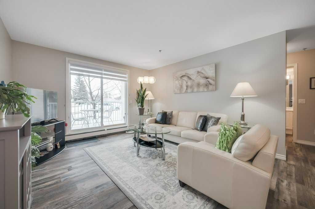 Welcome to this meticulously maintained 2 bedroom, 2 bathroom ground floor condo in the desirable community of Chaparral. Offering over 900 sq ft of functional living space, this well-designed unit features two spacious bedrooms including a primary bedroom with walk-in closet and private 4-piece ensuite. The open concept layout showcases upgraded luxury vinyl plank flooring, a functional kitchen with peninsula and breakfast bar, and spacious living and dining areas filled with natural light from the west-facing exposure, with direct access to the west-facing patio. A generously sized laundry room with additional storage adds everyday convenience. Located just a short walk from the main entrance, this unit includes titled underground heated parking ideally positioned across from the parkade door for easy access, along with a party room and ample visitor parking in this well-managed building. Enjoy quick access to Stoney Trail and Deerfoot Trail, close proximity to Fish Creek Provincial Park, ravines and pathway systems, plus nearby shopping, schools and transit.