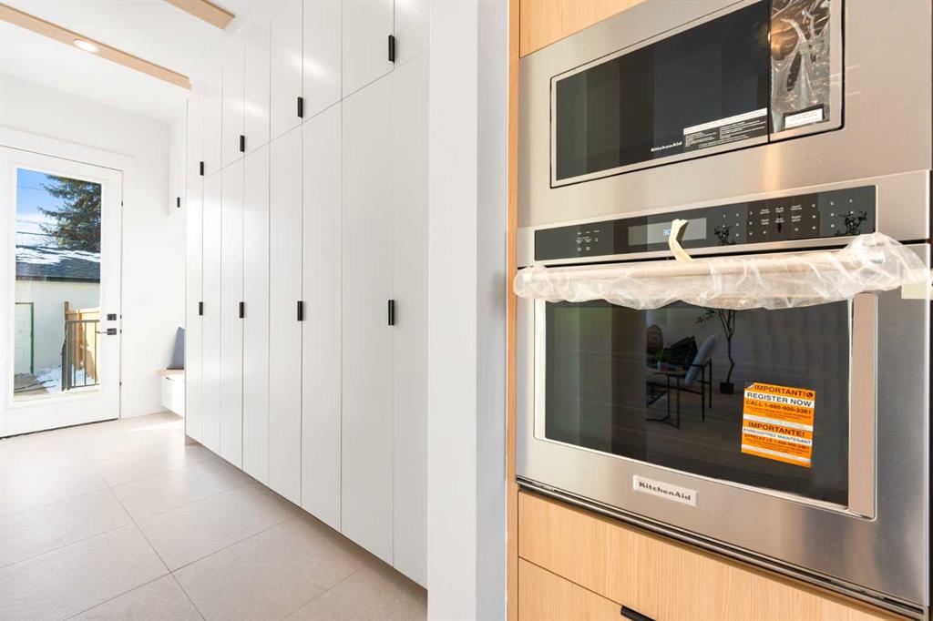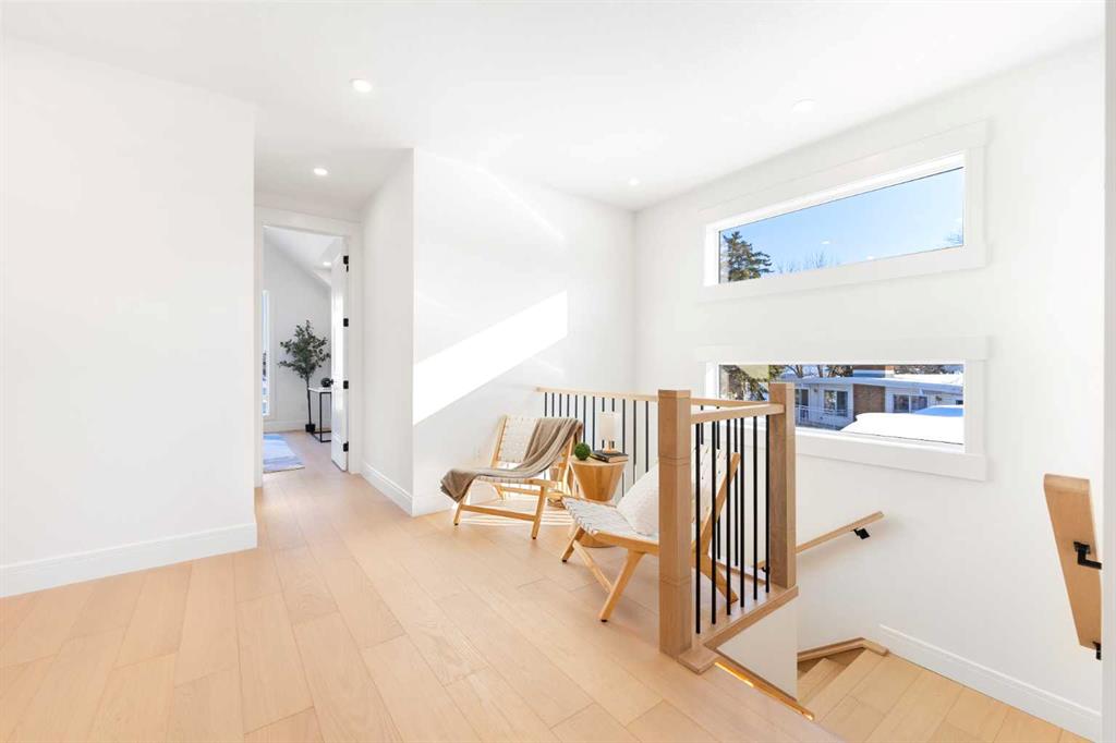 Discover this stunning, highly UPGRADED DESIGNER SEMI-DETACHED infill offering over 2,900 sq ft of meticulously designed living space, including 5 BEDROOMS and a fully developed LEGAL 2-BEDROOM BASEMENT SUITE with private entrance and separate laundry perfect for extended family, a live-in nanny, or generating rental income. Ideally located within walking distance to the WINSTON GOLF CLUB, this home seamlessly blends upscale finishes, thoughtful functionality, and an unbeatable inner-city lifestyle. Step inside to an open, airy main floor featuring soaring 10’ CEILING, 8’ DOORS, and rich HARDWOOD FLOORING throughout the main and upper levels. The spacious dining area, framed by large windows, creates the perfect setting for both elegant entertaining and everyday family meals. The DESIGNER KITCHEN is a true showpiece complete with a HIGH-END APPLIANCE PACKAGE, POT FILLER, gas cooktop, built-in oven/microwave, massive quartz island with breakfast bar seating, and sleek full-height custom cabinetry. A walk-through PANTRY with built-in shelving connects directly to the rear mudroom, adding everyday convenience and smart storage. At the rear of the home, the inviting living room is anchored by a cozy fireplace and oversized 10-foot sliding door that open to the WEST-facing backyard, flooding the space with natural light. A stylish designer powder room completes the main level. Upstairs, you’ll find three generously sized bedrooms designed with comfort in mind. The primary retreat offers a spa-inspired ensuite featuring HEATED FLOOR, a deep soaker tub, glass-enclosed shower, dual vanities, and a spacious walk-in closet. Two additional bedrooms, a modern 4-piece bathroom, a tiled laundry room with sink, and a versatile BONUS AREA ideal as a home office, reading nook, or kids play space complete the upper level. The fully developed LEGAL 2-BEDROOM LOWER SUITE (subject to city approval) offers exceptional flexibility and income potential. With its own private side entrance, this bright suite includes a contemporary KITCHEN with quartz countertops and full-height cabinetry, stainless steel appliances, a spacious living area, modern 4-piece bath, separate laundry, and two generous bedrooms. Outside, enjoy your private west-facing backyard oasis featuring a WOODEN DECK and full fencing perfect for relaxing evenings or entertaining guests. A double DETACHED GARAGE provides ample space for vehicles, storage, and tools. Situated in the vibrant community of WINSTON HEIGHTS, residents enjoy access to top-rated schools, grocery stores, recreation and aquatic centre, golf, soccer fields, tennis courts, and off-leash parks. Scenic walking and cycling pathways are just steps away, while shopping, dining, and downtown Calgary are only minutes away with convenient access to 16 Ave and Deerfoot Trail.