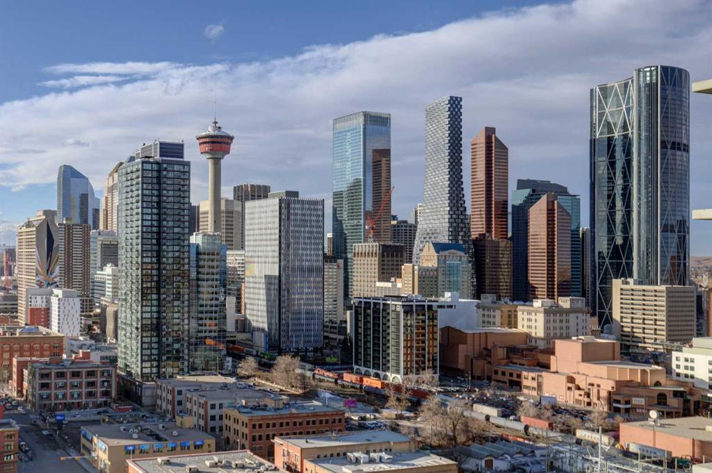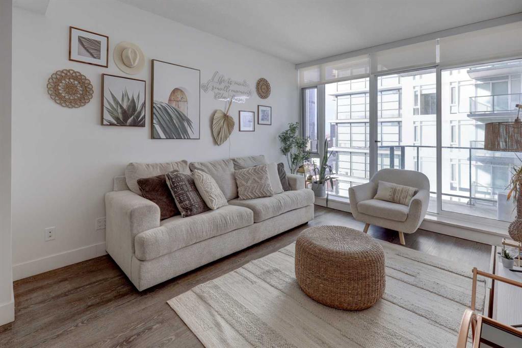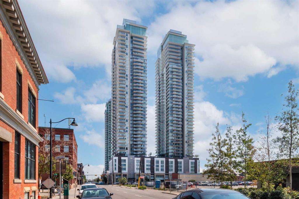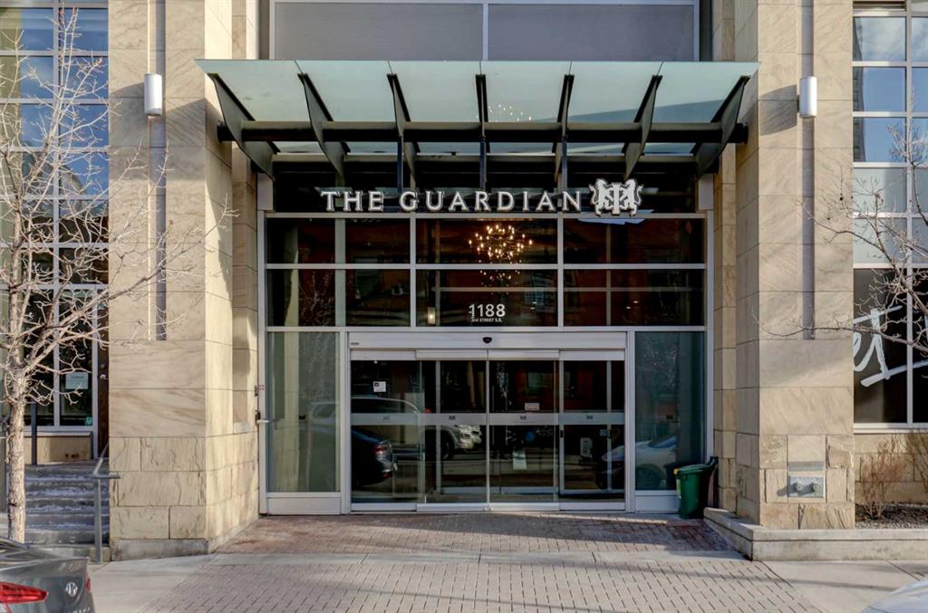 Experience elevated urban living with a VIEW | Modern one Bedroom Condo with titled underground Parking & assigned Storage, in The Guardian South Tower – one of Calgary’s most iconic high rise communities with incredible amenities. Inside, the thoughtfully designed open-concept layout is anchored by a sleek, contemporary Kitchen featuring integrated executive style appliances including a hidden refrigerator, all complemented by elegant stone countertops and modern cabinetry. Flowing seamlessly into the dining and living area, where floor-to-ceiling windows flood the space with natural light. Stepping out to the spacious covered Balcony to enjoy vibrant city views and stunning sunsets, glass railings help showcase the spectacular views of Calgary’s skyline – including the iconic Calgary Tower. A full blind package provides both style and privacy, upgraded LVP flooring throughout enhances the modern feel, and CENTRAL AIR conditioning ensures year-round comfort. Take advantage of The Guardian’s impressive resident AMENITIES, including a huge social club with fireplace, big-screen TVs, Wi-Fi, and lounge seating, a fully equipped FITNESS centre that rivals most gyms, and an expansive landscaped GARDEN TERRACE. This home includes titled, secure, heated UNDERGROUND PARKING and assigned storage locker. The building is pet-friendly with approval, and professionally managed, making it an ideal choice for professionals, investors, or anyone seeking a low-maintenance downtown lifestyle. Perfectly positioned in the heart of the Beltline, this home places you steps from the Stampede Grounds, Scotiabank Saddledome, transit, casinos, and an endless selection of restaurants, cafés, and shopping. A rare opportunity to own in one of Calgary’s most sought-after towers… Walkability & urban living at its FINEST. This unit checks all the boxes, book your private viewing before it’s too late!!