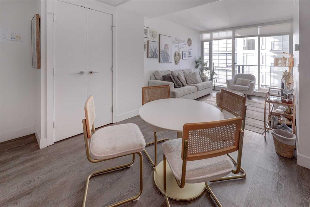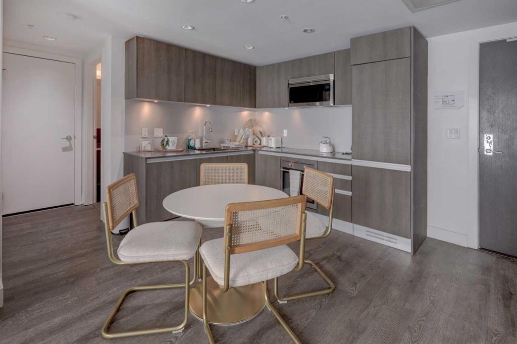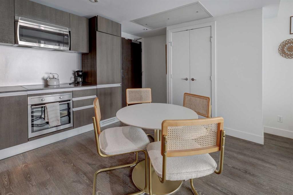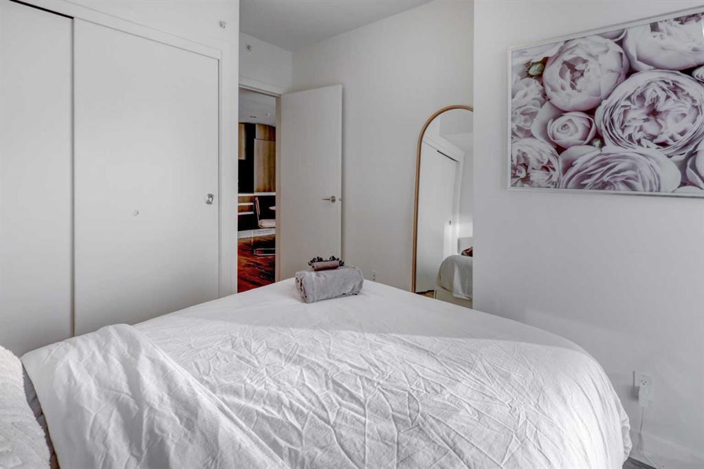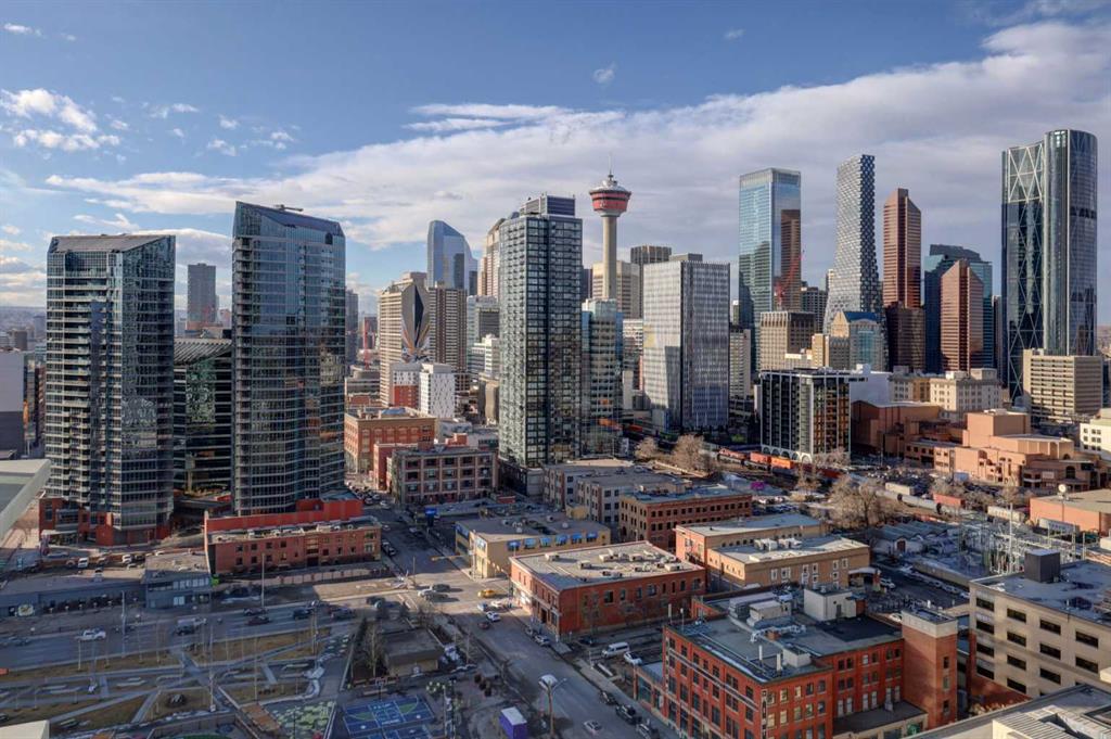 Experience elevated urban living with a VIEW | Modern one Bedroom Condo with titled underground Parking & assigned Storage, in The Guardian South Tower – one of Calgary’s most iconic high rise communities with incredible amenities. Inside, the thoughtfully designed open-concept layout is anchored by a sleek, contemporary Kitchen featuring integrated executive style appliances including a hidden refrigerator, all complemented by elegant stone countertops and modern cabinetry. Flowing seamlessly into the dining and living area, where floor-to-ceiling windows flood the space with natural light. Stepping out to the spacious covered Balcony to enjoy vibrant city views and stunning sunsets, glass railings help showcase the spectacular views of Calgary’s skyline – including the iconic Calgary Tower. A full blind package provides both style and privacy, upgraded LVP flooring throughout enhances the modern feel, and CENTRAL AIR conditioning ensures year-round comfort. Take advantage of The Guardian’s impressive resident AMENITIES, including a huge social club with fireplace, big-screen TVs, Wi-Fi, and lounge seating, a fully equipped FITNESS centre that rivals most gyms, and an expansive landscaped GARDEN TERRACE. This home includes titled, secure, heated UNDERGROUND PARKING and assigned storage locker. The building is pet-friendly with approval, and professionally managed, making it an ideal choice for professionals, investors, or anyone seeking a low-maintenance downtown lifestyle. Perfectly positioned in the heart of the Beltline, this home places you steps from the Stampede Grounds, Scotiabank Saddledome, transit, casinos, and an endless selection of restaurants, cafés, and shopping. A rare opportunity to own in one of Calgary’s most sought-after towers… Walkability & urban living at its FINEST. This unit checks all the boxes, book your private viewing before it’s too late!!