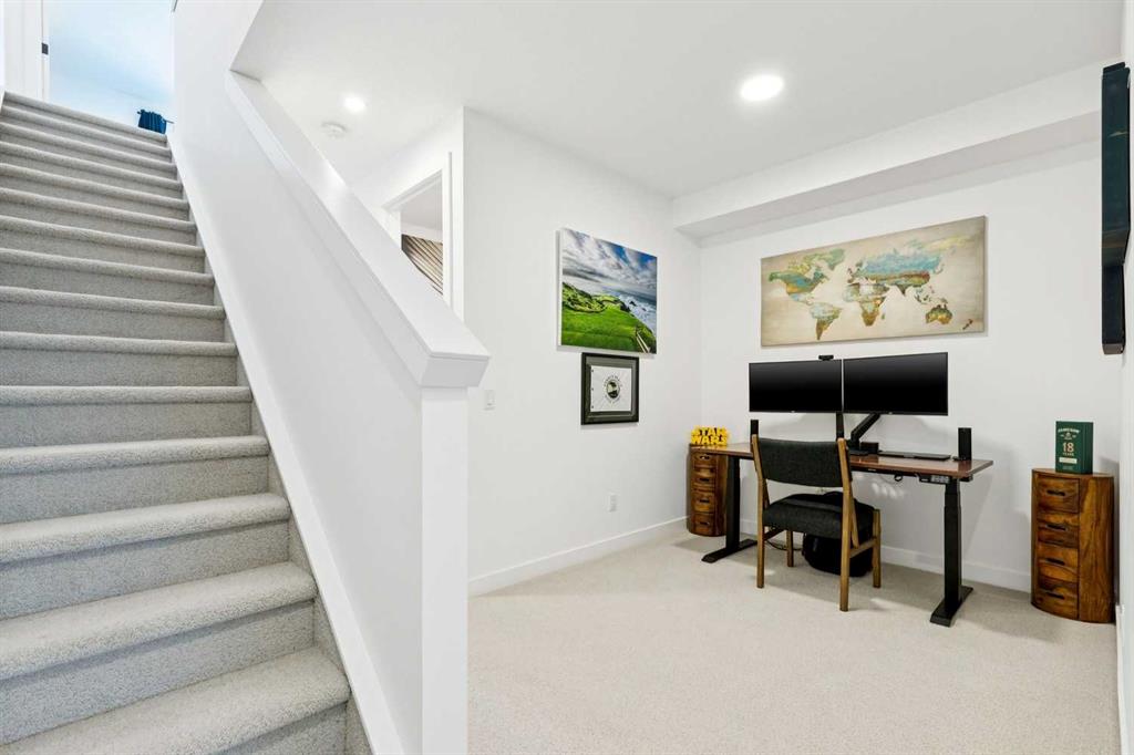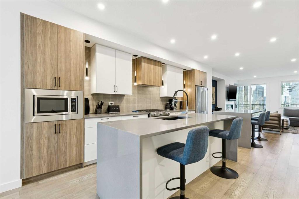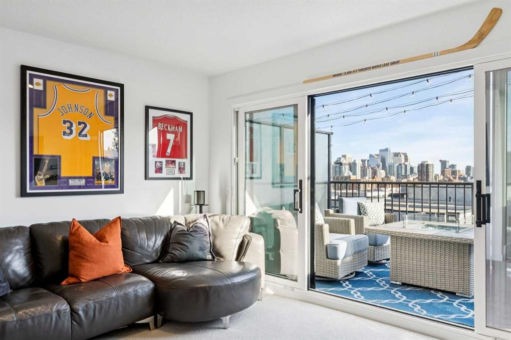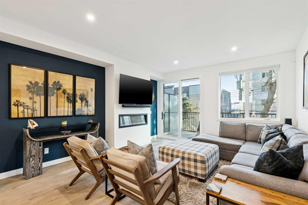 Experience elevated urban living in this stunning luxury townhome offering unobstructed views of Calgary’s downtown skyline. Sitting at 2,648 sq. ft. of thoughtfully designed living space, 3 bedrooms, 3.5 bathrooms, a rooftop loft and patio, a lower-level flex space, and a private yard, this home delivers a rare combination of luxury, space, and versatility. From the moment you arrive, the quality and attention to detail are evident. A west-facing front patio welcomes you in and sets the tone for the seamless indoor-outdoor lifestyle this home was designed for. Inside, the open-concept main floor is ideal for entertaining and features upscale finishes and extensive upgrades throughout. The dining area overlooks the front patio and flows effortlessly into the chef-inspired kitchen, complete with double islands, upgraded backsplash, stainless steel appliances, and exceptional storage. The spacious living room is anchored by a cozy fireplace and opens onto a private back deck with a gas line, perfect for summer grilling and relaxed evenings at home. Completing this level is a powder room perfectly placed adjacent to the kitchen for guests. The second level offers two generously sized bedrooms on each end of the home providing privacy and natural light throughout the day. The east-facing bedroom comes complete with a spacious 5-piece ensuite and the west-facing bedroom has access to the centrally located 4-piece This floor also includes convenient laundry with an upgraded stone countertop and an additional flex space ideal for a home office or reading lounge. The top floor is truly the showpiece. A spacious primary retreat features a walk-in closet and spa-inspired ensuite, while the adjoining upper lounge opens onto the spectacular rooftop patio. Complete with patio lighting and a fire table, this space feels magical and is the perfect setting to enjoy Calgary’s warm summer nights with the downtown skyline as your backdrop. The fully developed walkout lower level adds even more flexibility, offering a tandem attached garage, with upgrades like roughed-in in floor heat in the garage and the gym and a bright flex room overlooking the fenced yard, ideal for a home gym, office, or creative studio. Mature trees and upgraded landscaping with stonework and a lower pathway enhance the outdoor experience, while three private patio spaces provide exceptional options for entertaining or relaxing. Additional features include central air conditioning, custom window coverings including blackout blinds in the primary suite, Lux windows throughout, upgraded epoxy flooring and custom garage cabinets, smart home capabilities, and numerous thoughtful upgrades that elevate everyday living. Located steps from trendy shops, restaurants, and cafés and just minutes to downtown, this home offers unmatched walkability without compromising space or luxury.