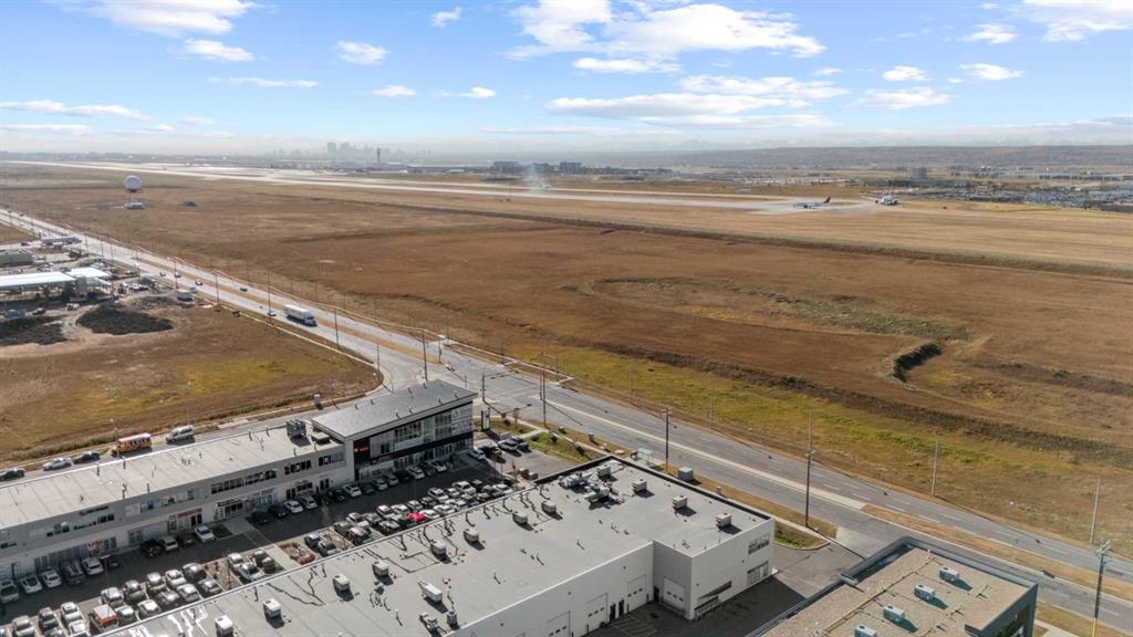 Shell bay with City-approved 100% mezzanine construction, allowing up to 3,114 sq. ft. of buildable space. Approx. 1,557 sq. ft. main floor plus 1,557 sq. ft. mezzanine with 26-ft ceilings, sprinklers, and large front glazing. Concrete tilt-up building with ample parking and pylon signage options. Excellent exposure facing 36 Street NE with views toward Calgary International Airport and quick access to Airport Trail, Metis Trail, and Stoney Trail NE. Ideal for office, showroom, or professional use.