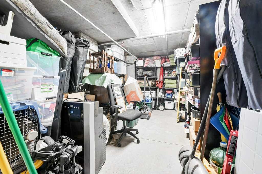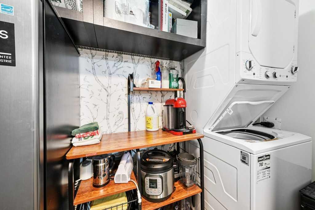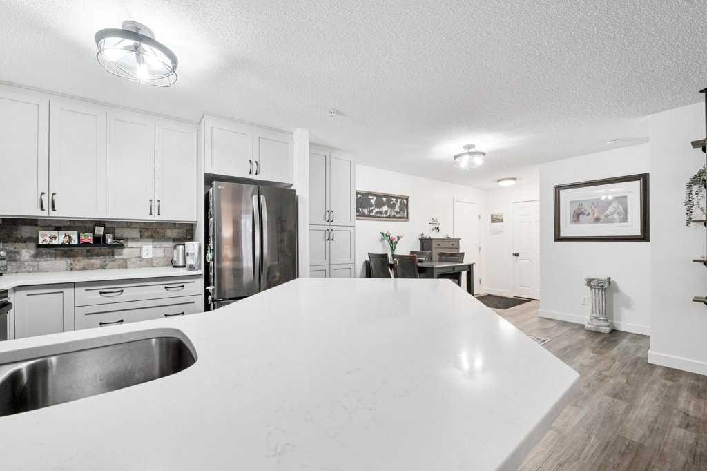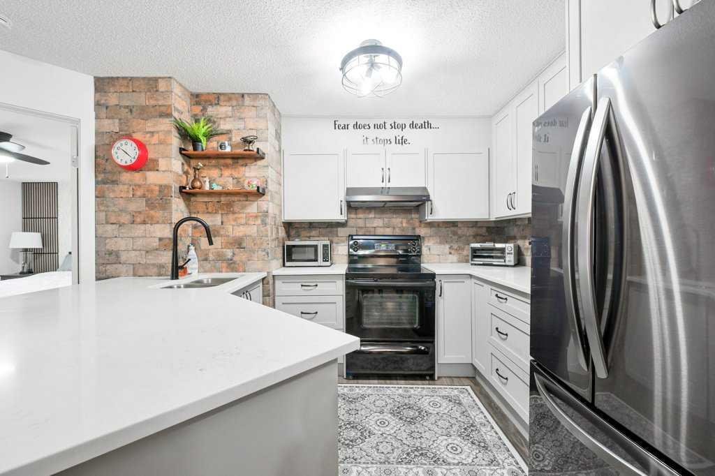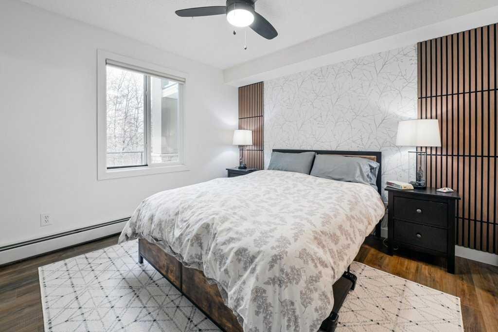 Welcome home to this fully renovated 2-bedroom, 2-bath sanctuary with in-suite laundry, titled underground parking, and a massive storage room located in Fish Creek. Renovations were completed in 2024 and include all flooring, all lighting, new kitchen cabinets with ample storage, backsplash, quartz counters, fridge, and dishwasher. Both bathrooms have been fully renovated. The in-suite laundry includes a washer, dryer, and an additional freezer. All window coverings are Hunter Douglas electric programmable blinds.