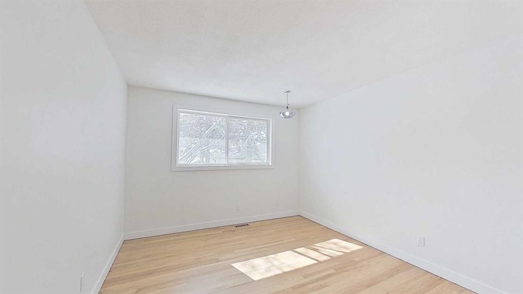 The main floor features a bright, functional layout with three bedrooms and a full bathroom. You’ll find beautifully refinished original hardwood and new vinyl plank flooring throughout. The kitchen is designed for daily life, featuring all standard appliances (fridge, stove, dishwasher) and a practical storage bench nook.