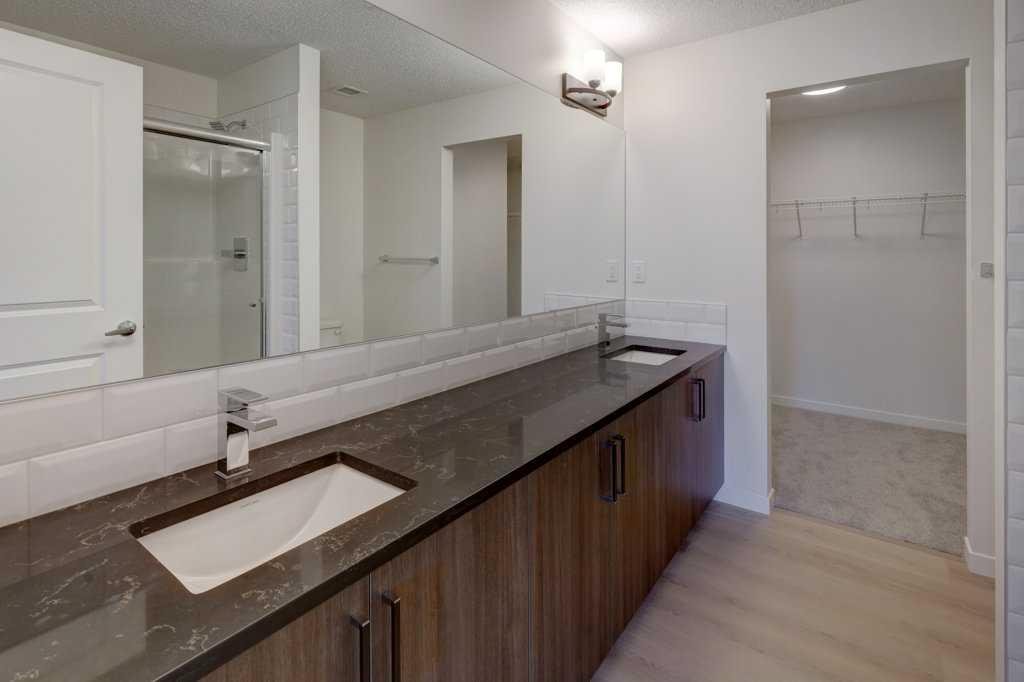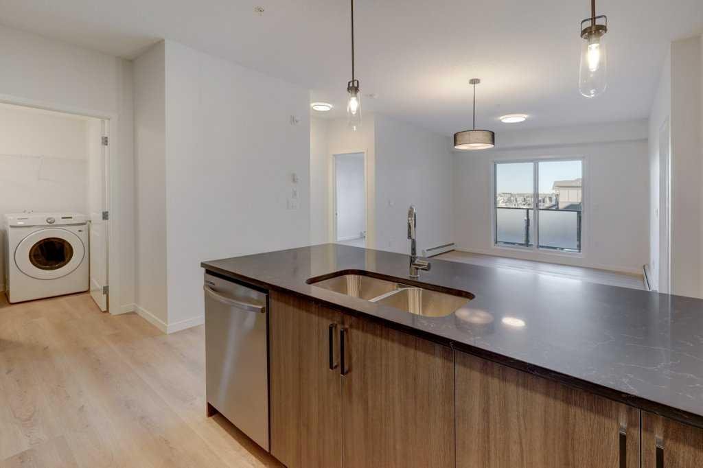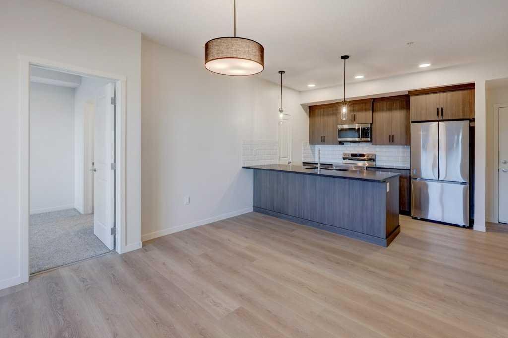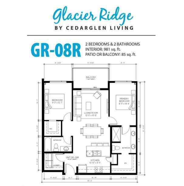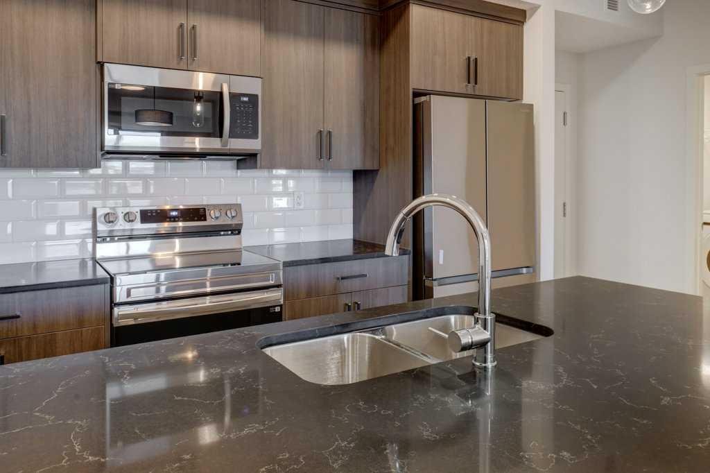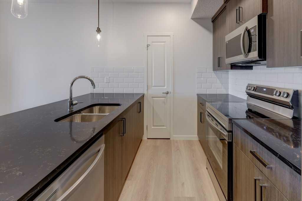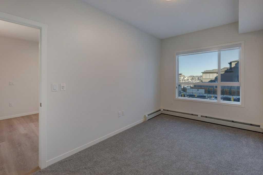 INTRODUCING GLACIER RIDGE, IN BEAUTIFUL NORTHWEST CALGARY. BUILT BY CEDARGLEN LIVING, WINNER OF THE Customer Insight BUILDER OF CHOICE AWARD, 6 YEARS RUNNING! BRAND NEW “GR08R” unit with high-spec features. You will feel right at home in this well thought-out, 902.12 RMS sq.ft. 2 bed, 2 bath home with open plan, 9′ ceilings, Low E triple glazed windows, BBQ gas line on the patio, Fresh Air System (ERV), and so much more. The kitchen is spectacular with full height cabinets, quartz counters, undermount sink, rough-in water line to the fridge and S/S appliances. The island is extensive with built in flush breakfast bar, which transitions into the spacious living area, perfect for entertaining. The spacious primary bedroom has a large bright window (triple pane windows) and huge walk-in closet. You’ll be impressed with the 4pc ensuite with double vanities and stand up shower. The second bedroom is located on the other side of the unit for privacy and a 4pc bath with quartz counters, and undermount sink is located next to it. Nearby is the spacious laundry/storage room, this is a must see (washer & dryer included). Highlights include: Hardie board siding, designer lighting package, sound reducing membrane to reduce sound transmission between floors, clear glass railing to balconies and 1 titled underground parking stall included. A once in a lifetime community in Northwest Calgary. Framed by views of the Rocky Mountains and distinguished by natural coulees that cross the land, Glacier Ridge offers a rare chance for families to live in a new community. PET FRIENDLY COMPLEX, IMMEDIATE POSSESSION AVAILABLE AND DON’T FORGET TO CHECK OUT THE VIRTUAL TOUR.
