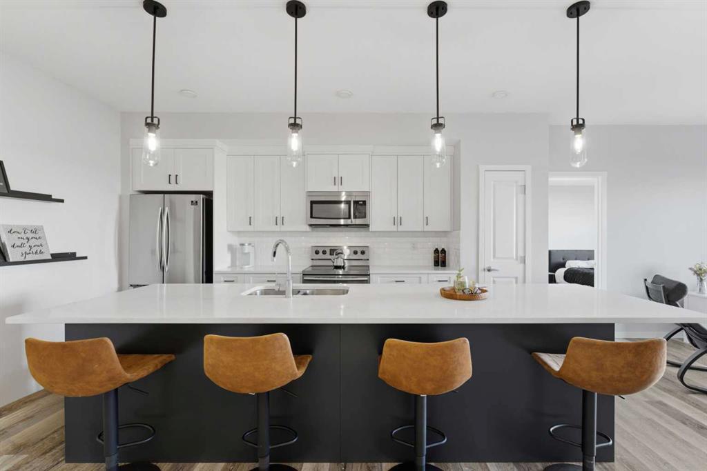 Welcome to Seton Park Place II, one of Calgary’s most sought-after developments built by CedarGlen Living, the two-time “Builder of Choice” award winner. This beautifully designed 835 sq. ft. condo offers 2 bedrooms, 2 bathrooms, 9′ ceilings, and an open-concept layout filled with loads of natural light. The modern kitchen features a stylish two-tone color scheme, quartz countertops, and stainless-steel appliances, flowing seamlessly into the living area and built-in dining space—perfect for entertaining. Enjoy impressive views of the regional park from the large second-floor balcony. The spacious primary bedroom includes a walk-in closet and 4-piece ensuite, while the second bedroom, additional 4-piece bath, and in-suite laundry add convenience. Step outside to discover unmatched amenities just moments away, including the world’s largest YMCA, the South Health Campus, parks, pathways, and the vibrant Seton Urban District. This home offers the ideal blend of comfort, style, and walkable living in one of Calgary’s fastest-growing communities.