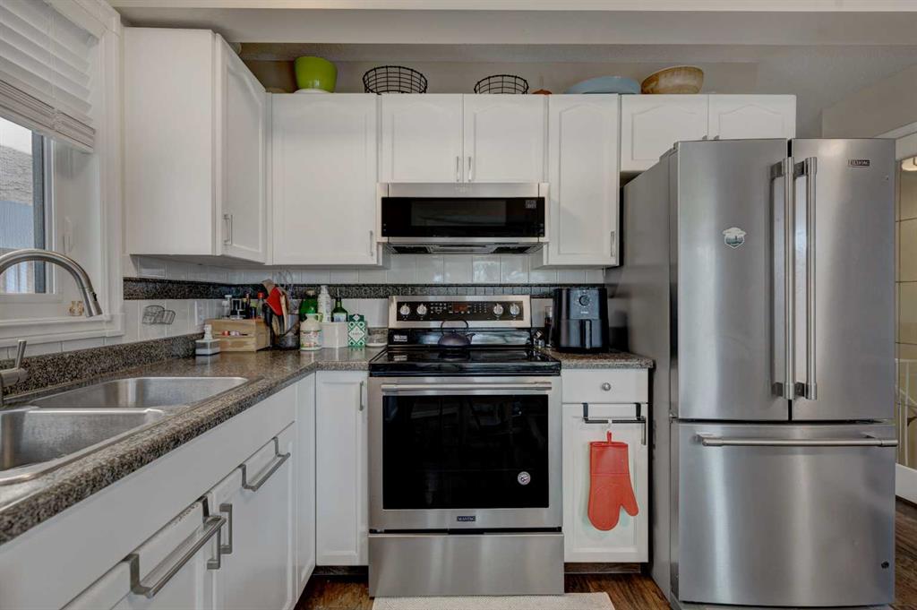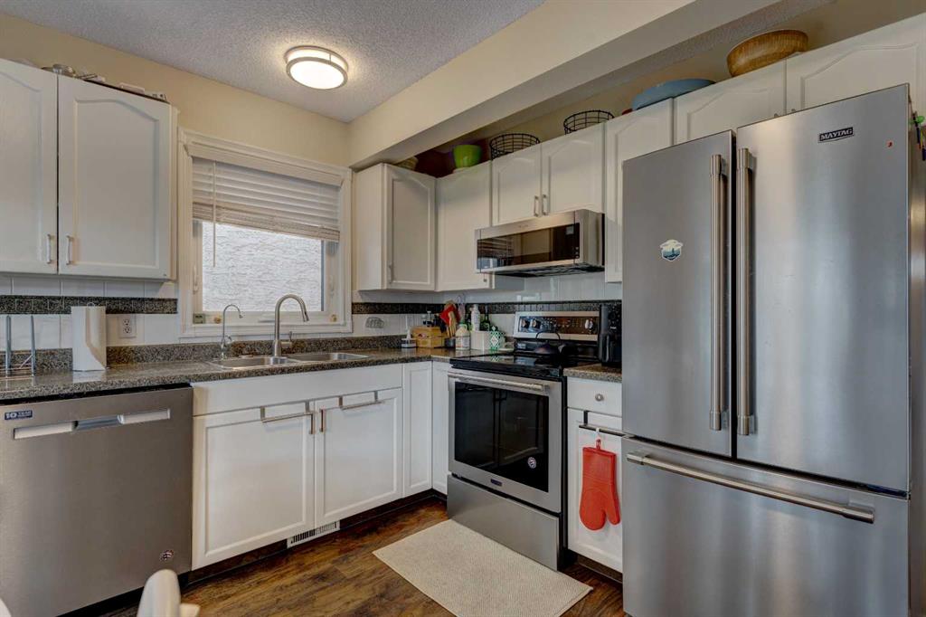 Located in a prime location of Christie Park, this 3 BEDROOM END UNIT HAS A FULLY FINISHED WALK-OUT BASEMENT , 2 1/2 baths and is just a 5 MINUTE WALK TO THE C-TRAIN STATION as well as Sunterra Market that features fantastic shopping, restaurants and more. The main floor features vinyl plank flooring with carpet upstairs and in the basement. The large living room features a gas fireplace, bay window along with enough room for a separate dining area if preferred. The kitchen features stainless steel appliances, re-finished cabinets, eating area and access to a sunny south facing balcony with composite decking. The main level also features a half bathroom and convenient location for the high efficiency washer and dryer. Upstairs you will find a spacious master bedroom with large closet, 4-piece bathroom and 2 good sized additional bedrooms. The finished walkout basement has a large, open rec-room, with plenty of storage and a 3-piece bathroom. There are many upgrades in this home including triple pane windows upstairs and on the main floor, a water softener and water filtration system. This property is a must see…..CALL TODAY TO VIEW!