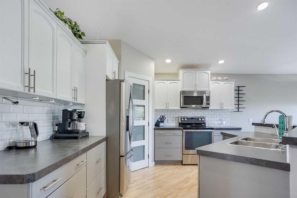 This beautifully maintained walk-out bungalow offers 5 bedrooms, 3 bathrooms, and 2755 sq. ft. of living space designed for both family living and entertaining. The main level welcomes you with vaulted ceilings, fresh paint (2021), and a thoughtful layout that includes a bright living area, 3 bedrooms, main floor laundry, and updated hardwood flowing from the kitchen into the hallway.