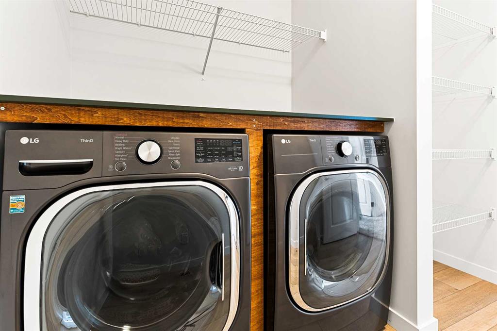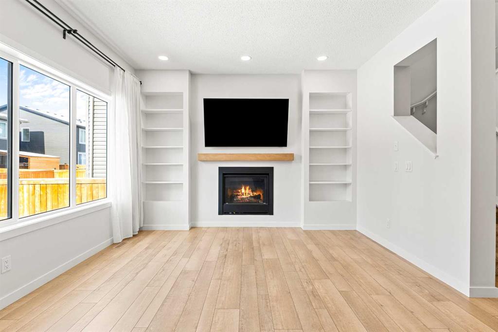 The main floor features high ceilings, a spacious front entry, convenient 2-piece bath, desk nook, and a heated double attached garage that is slightly larger than average with room for a truck. The kitchen is sure to impress with a large quartz island, dual tone kitchen cabinetry, abundant cupboard space and walk-through pantry leading to a spacious mudroom with hooks and benches. The cozy living room features a gas fireplace with built-in bookshelves on both sides and a wood mantle. Luxury vinyl plank flooring runs throughout the main floor.