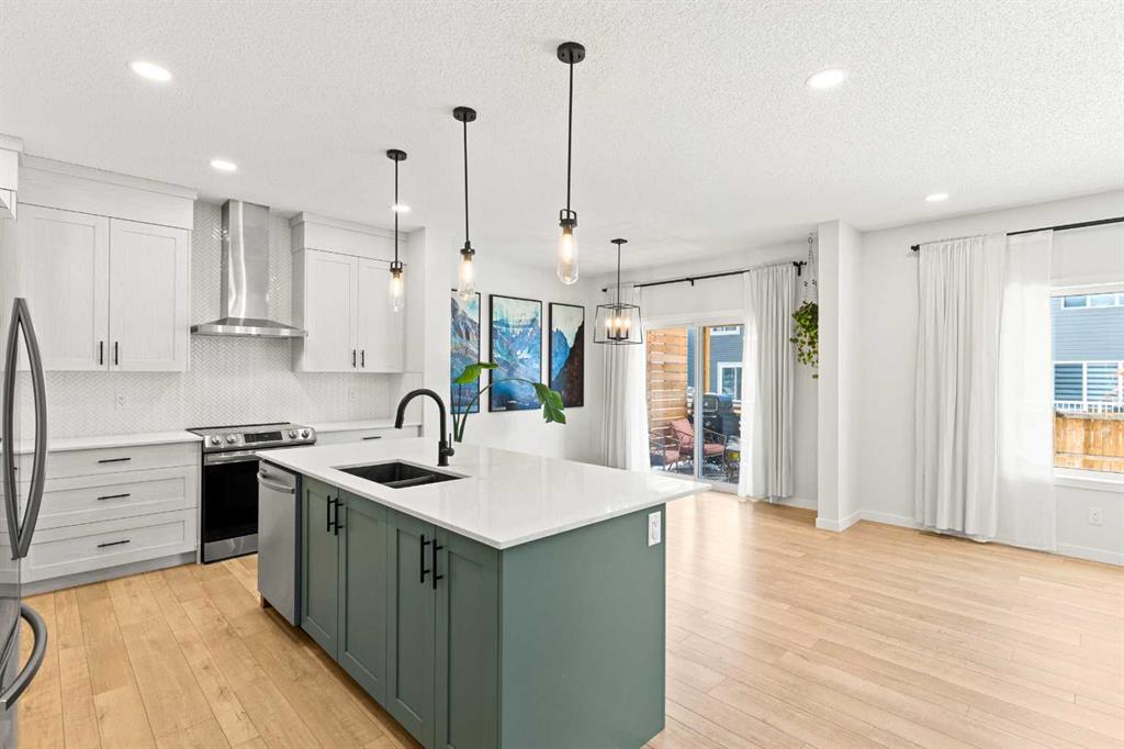 Nearly new 3 bedroom, 2.5 bathroom home offering over 2,000 sq ft of thoughtfully designed living space in the friendly community of Heartland. This move-in ready home offers stylish finishes, functional family living, and a great location within walking distance to Heartland shopping, parks, green space, and walking trails, with easy access to Highway 1A.