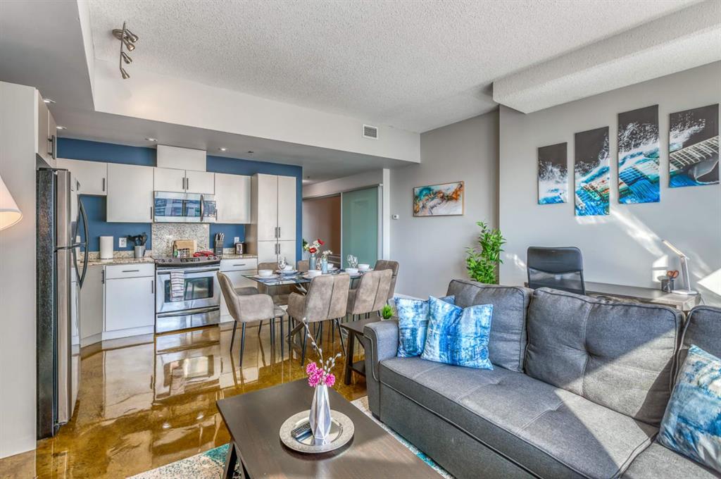Welcome to urban living at its best in the vibrant Colours by Battistella building in the heart of Calgary. This stylish two bedroom, two bathroom sub-penthouse condo offers a bright south-east facing balcony that fills the space with natural light and provides partial views toward the iconic Stampede Park.
