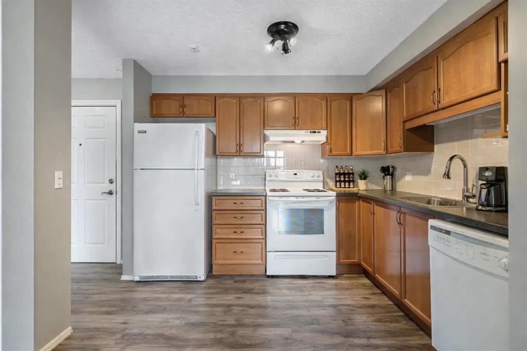**Reduced by $10K** Welcome to Calvanna Village—an exceptional 55+ community known for its vibrant atmosphere and strong sense of connection. This bright and beautifully updated main-floor unit offers nearly 900 sq ft of comfortable living, featuring 2 bedrooms, 2 full bathrooms, in-suite laundry, and new vinyl plank flooring with fresh paint throughout. The open-concept layout includes a spacious kitchen with maple cabinetry, flowing into a large, sun-filled living and dining area—perfect for both everyday living and entertaining. The two generously sized bedrooms include a primary suite with full ensuite, offering both comfort and privacy. Calvanna is loved for its welcoming, close-knit community and low-maintenance lifestyle. Residents enjoy a variety of amenities including a clubhouse with social activities, fitness equipment, games room with pool table and table tennis, and inviting common areas to gather with friends and neighbours. This unit also includes underground parking and a storage locker. Ideally located within walking distance to shopping, restaurants, grocery stores, pharmacies, banks, the Okotoks Senior Centre, and scenic river pathways. A wonderful opportunity to enjoy easy, connected living in a highly sought-after community.