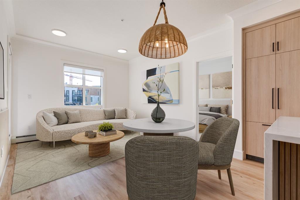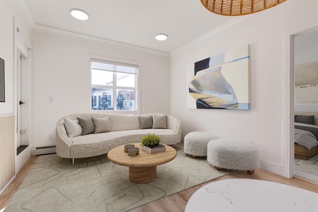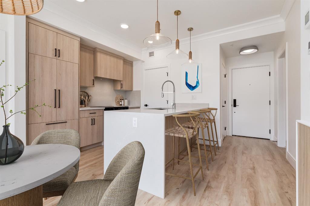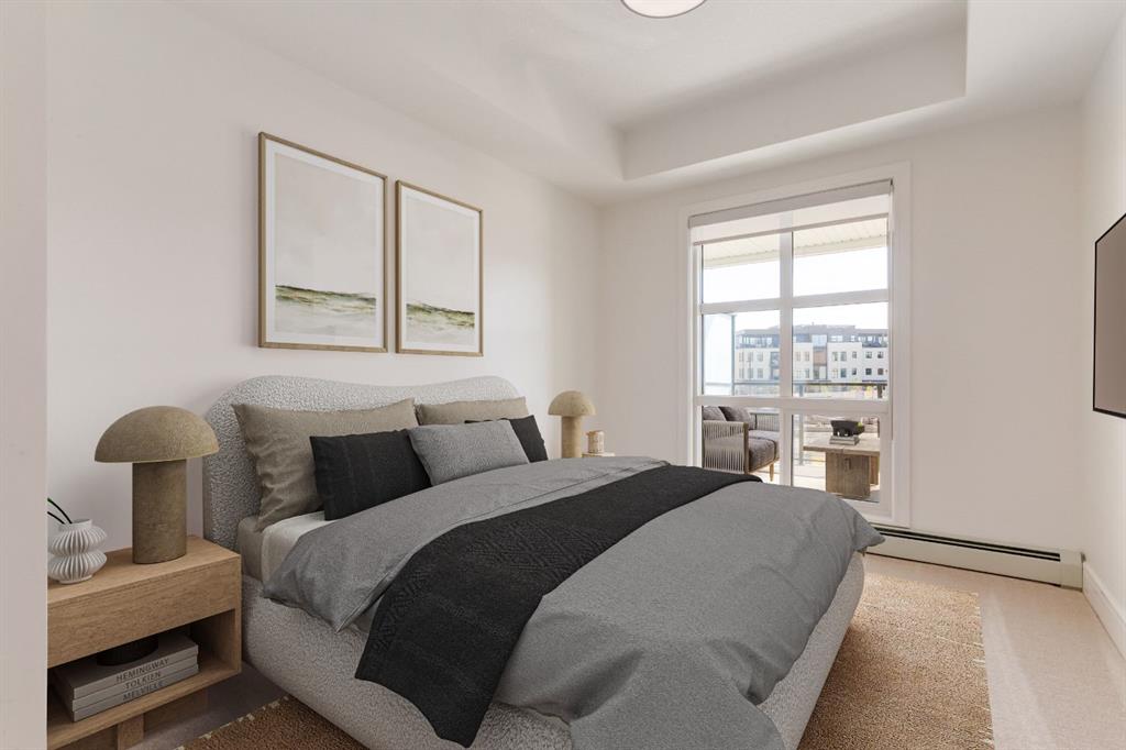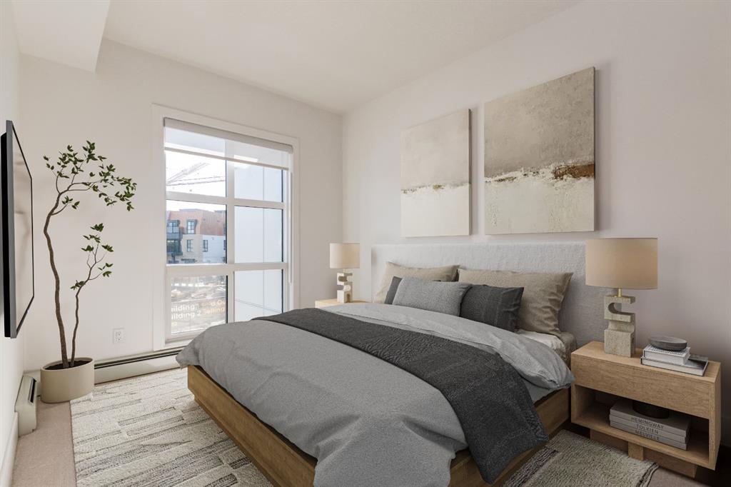 This brand-new 2 bedroom, 2 bathroom condo on the main floor is thoughtfully designed with both style and comfort in mind. Inside, you’ll find high-end finishes, in-suite laundry, waterfall quartz countertops, and triple-pane floor-to-ceiling windows that flood the space with natural light. Step outside to your private patio, a perfect extension of your living space.