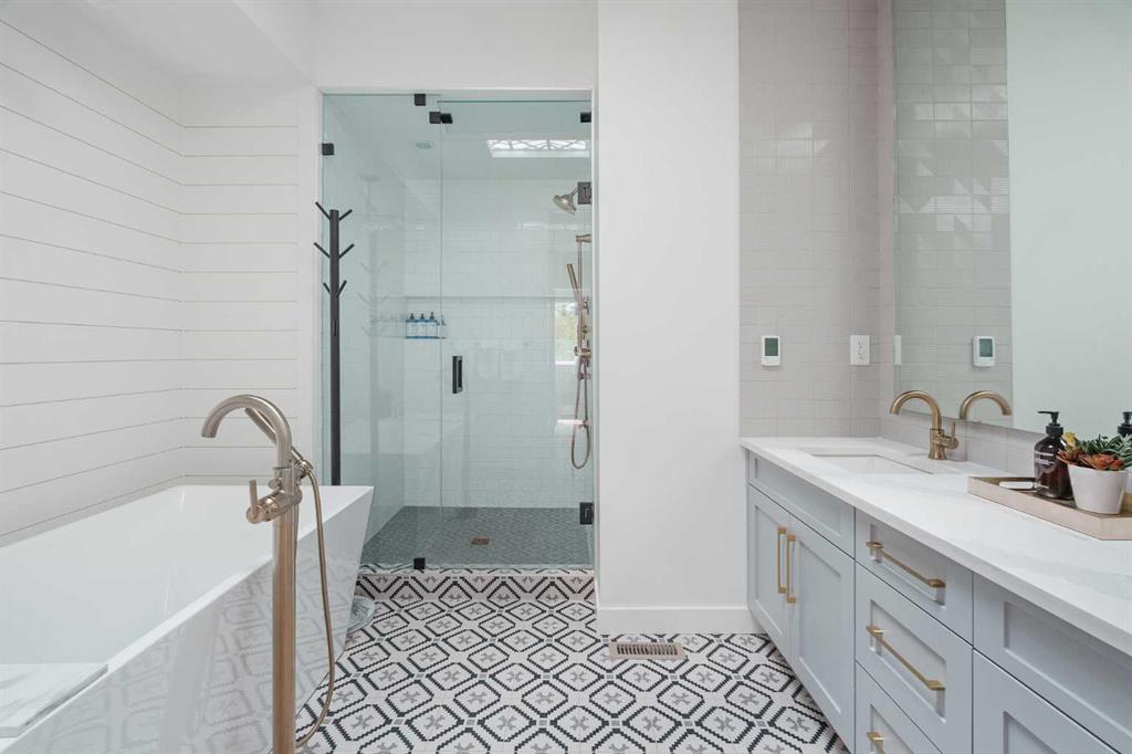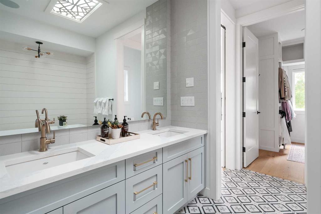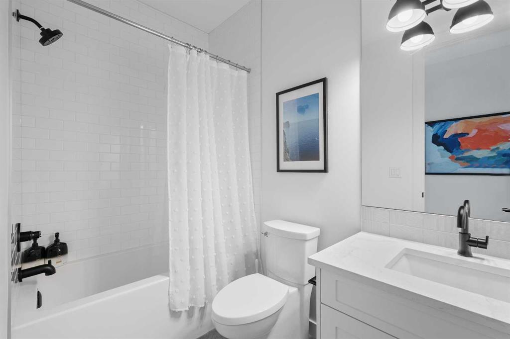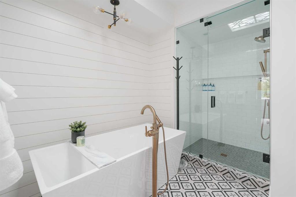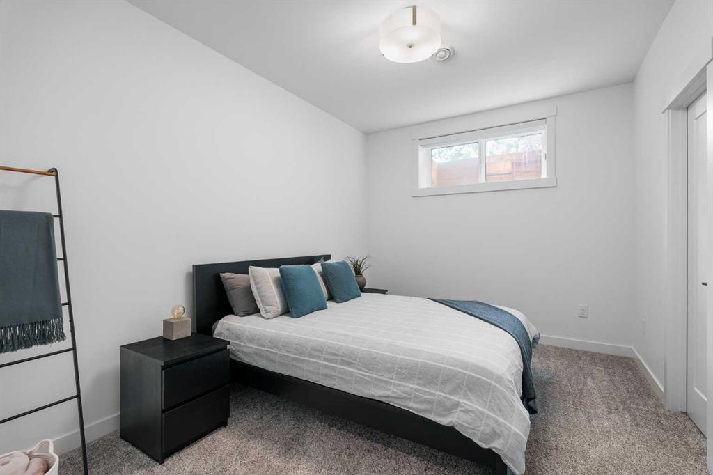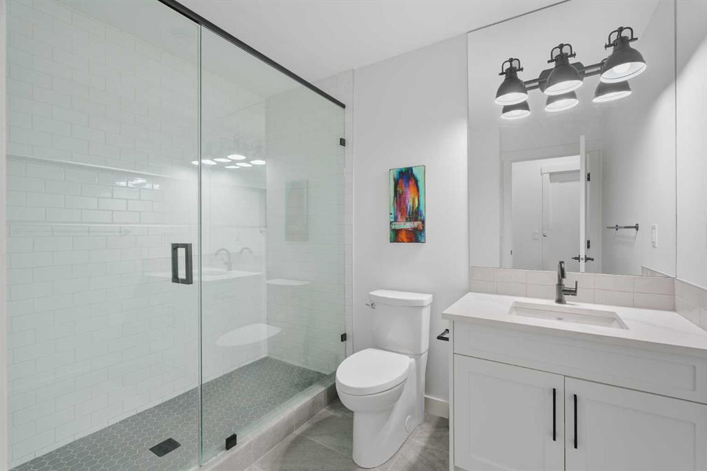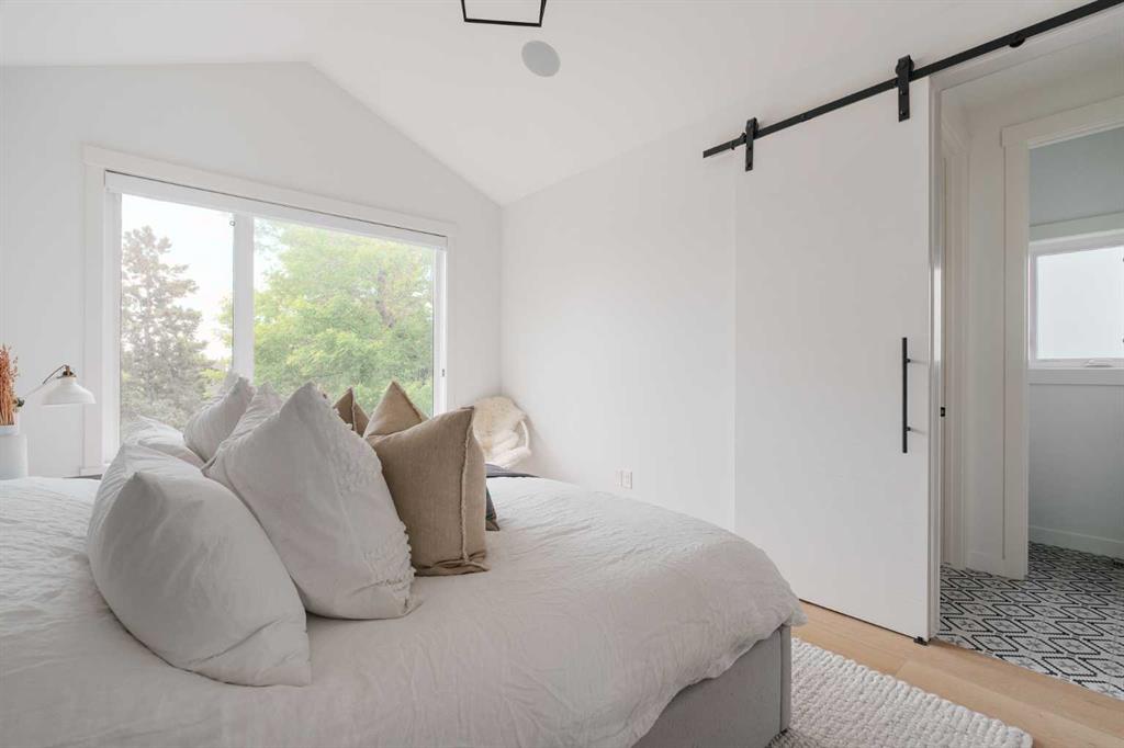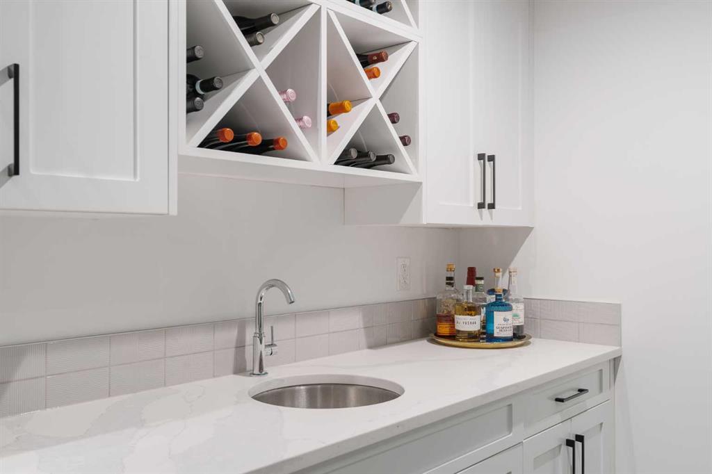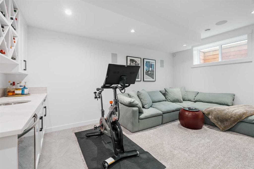 From the moment you step inside, this beautifully appointed and impeccably finished semi-detached home offers an elevated sense of style, comfort, and understated luxury, with beautiful natural light that pours through the open-concept main floor and Hunter Douglas blinds throughout. Just off the front entry is the formal dining room, offering a refined space for hosting and everyday gathering alike. From there, the main floor unfolds into a stunning central kitchen, thoughtfully designed to balance beauty and practicality. Crisp white cabinetry is paired with quartz countertops, striking geometric backsplash, and stainless-steel appliances including a gas range, while the large centre island with seating creates an inviting focal point for casual dining, conversation, and culinary creativity. An upgraded wood plank ceiling detail adds architectural interest, and pendant lighting paired with recessed lighting brings a polished, elevated finish to the space. At the rear of the home, the living room feels both inviting and sophisticated, centred around a gas fireplace and panelled feature wall, with views extending into the backyard. Near the back entry, a built-in bench with hooks creates a stylish everyday drop zone. An elegant staircase with glass and wood railings draws the eye upward, and as you ascend, you’ll discover a full bath, and three bedrooms with hardwood flooring throughout. The primary suite is a true retreat, beautifully appointed with a vaulted ceiling, a spacious walk-in closet with custom organizers, and a beautifully curated ensuite hidden behind a barn door. Finished with patterned tile floors, a freestanding soaker tub, heated floors, a glass-enclosed walk-in shower, and a skylight, the space feels both serene and beautifully elevated. Hunter Douglas blinds continue on this level, including blackout blinds, add comfort and quality throughout the upper level. The fully developed basement offers exceptional additional living space, anchored by a spacious rec room with upgraded built-ins and a beautifully enhanced wet bar area, perfectly suited to entertaining or unwinding at the end of the day. A fourth bedroom, a full bathroom, and ample storage complete this lower level with both style and practicality. Outside, the backyard has been thoughtfully upgraded with premium artificial turf, creating a polished, low-maintenance outdoor setting, while the insulated garage adds further convenience. Additional upgrades include central air conditioning, a new roof (2024), a new hot water tank (2025), repainted fence and front shingles, dimmers throughout, HRV, and roughed-in speakers. Tucked into the heart of North Glenmore Park, the home enjoys a wealth of nearby recreation and proximity to schools. Close to the Glenmore Athletic Park, Lakeview and Earl Grey Golf course, reservoir pathways and Weaselhead Flats.