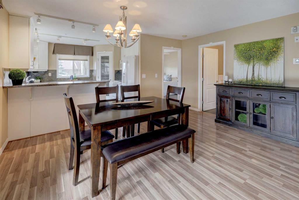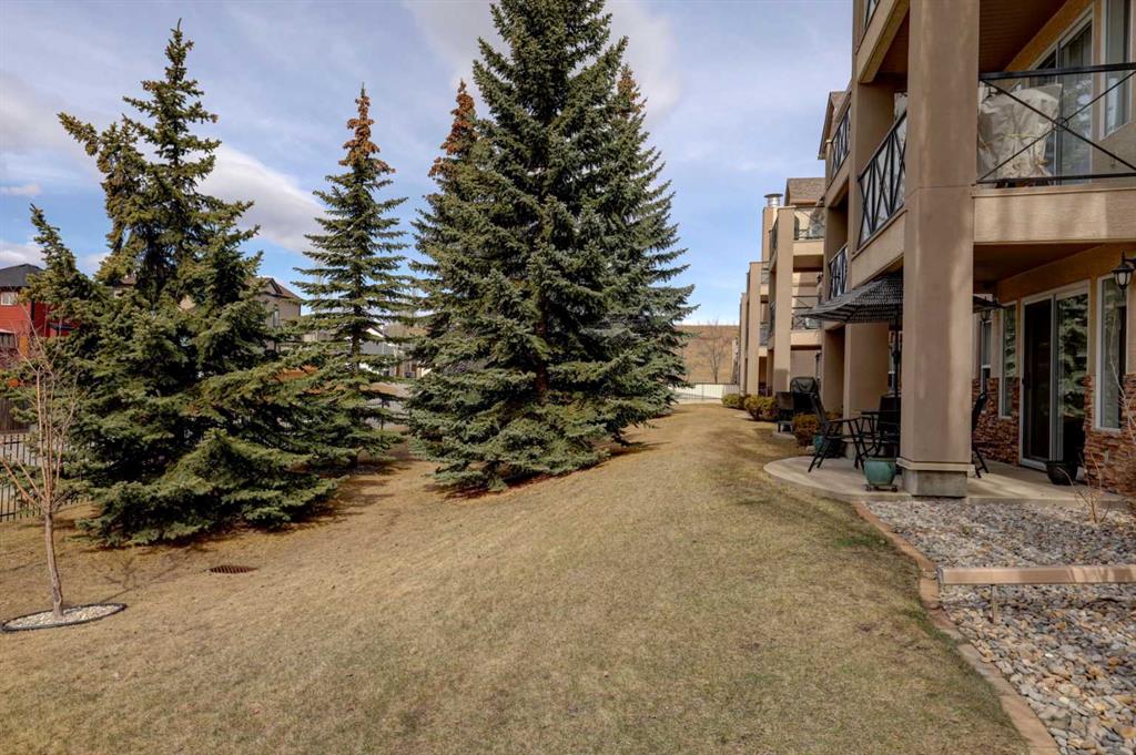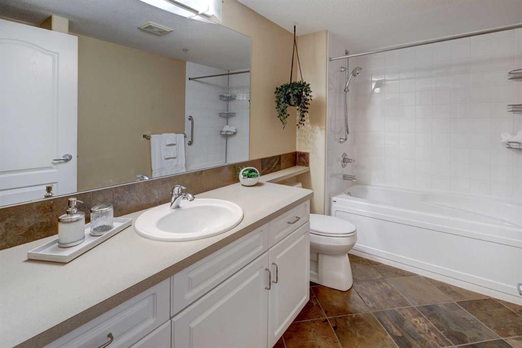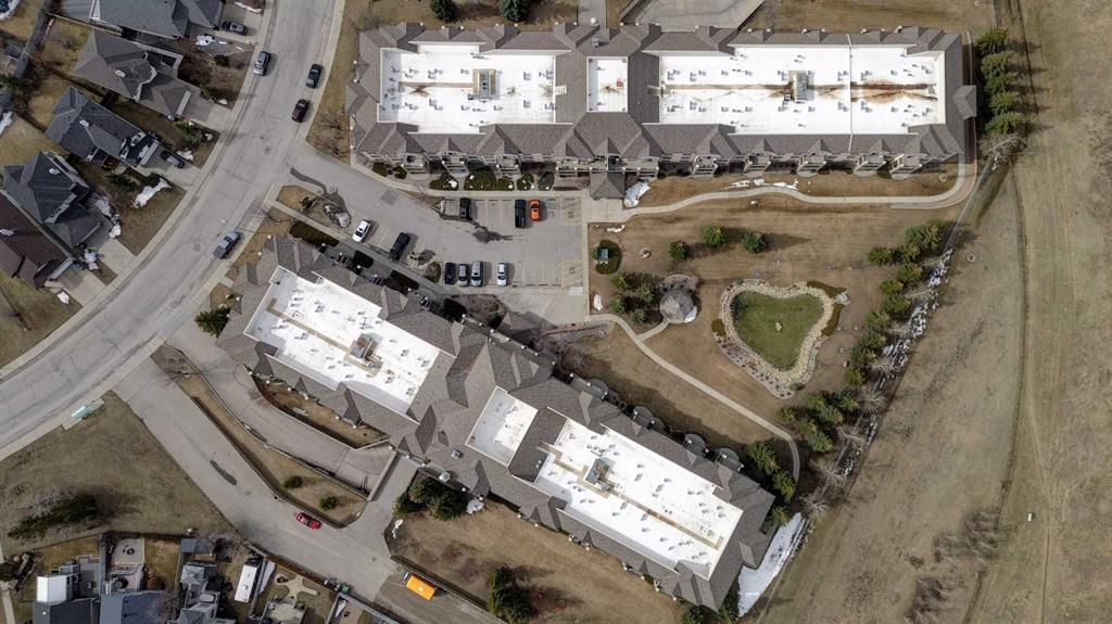 Let the sun shine in and lift your spirits!! You’ve found the home that is bathed in an abundance of natural light with this corner unit. An 18+ Adult complex, with this 2 bed/2 bath, main floor home featuring 2 patios. One patio enjoys street-side activity perfect for bar-b-quing , while the second patio provides a more peaceful experience overlooking the lush greenspace. You’ll appreciate the convenience of a sidewalk off the driveway that leads directly to the patio doors of this unit as well. So many more advantages this unit offers to talk about…The open floor plan invites entertaining and conversation, with an ease for furniture placement due to no awkward baseboards to deal with. Two kitchen windows contribute to the light-filled experience, while one presents a lovely view of the mountains. The thoughtfully designed kitchen offers an excellent capacity for more than one cook at a time. With more than ample counter top, cupboard and pantry space for storage. The primary bedroom is sizeable enough for a king size suite and includes a well sized walk in closet and 4 pc. ensuite. The 3 pc. bath off the main area adds convenience for guests, as does the second bedroom – also with a view of the mountains! In-suite laundry, a titled underground parking stall and an assigned 9’X5′ storage locker in front of the parking stall round off the added value you’ll find here. Now for the very well managed complex…a games/community room with library, pool table and comfy meet-up area are located in bldg. 2. While bldg. 1 hosts a fitness room with sauna/change room & shower. A car wash bay is steps away from the parking stall. The landscaped courtyard showcases a charming gazebo and lovely pond to enjoy. Easy access with a short drive to a multitude of shopping options, restaurants, professional services, the beautiful lake you’ll have priviledges to, the LRT system, Crowchild & Stoney Trails…Need I say more?! You truly need to start your car and view this unit…