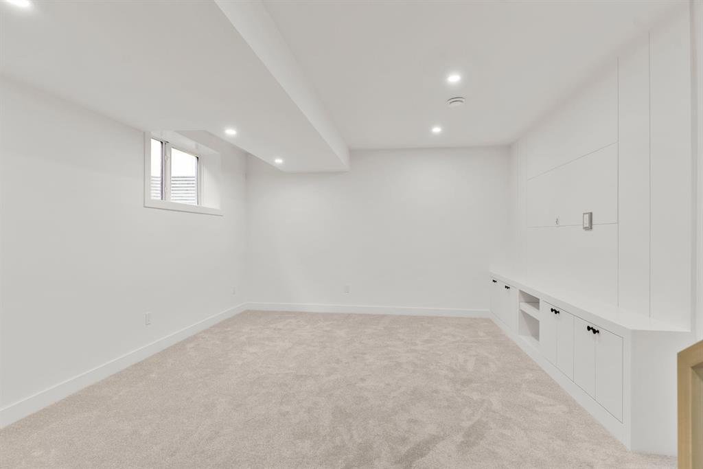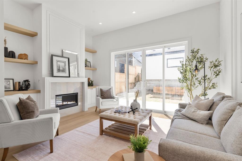 Last unit remaining. This beautifully designed residence offers over 2,400 sq ft of thoughtfully curated living space, complete with a sunny south-facing backyard that fills the home with natural light, blending refined finishes with a functional layout. A grand foyer welcomes you into the main level, featuring soaring 11-foot ceilings and rich hardwood flooring throughout, while the formal dining area is enhanced by custom wainscoting and large windows that flood the space with natural light. The designer kitchen is a true centerpiece, showcasing a curved island with Taj Mahal quartzite, premium built-in Fisher & Paykel appliances, white oak shaker cabinetry, gold and black fixtures, a curved plaster chimney hood, black granite sink, and under-cabinet lighting. The spacious great room is anchored by a custom tiered gas fireplace finished in quartz slab, complemented by built-in shelving and cabinetry, while a functional mudroom with built-ins and bench seating, along with a stylish powder room wrapped in designer wallpaper, complete the main level. Upstairs, 9-foot ceilings and hardwood floors continue through the hallways, leading to a stunning primary retreat with high ceilings, floor-to-ceiling windows, detailed wainscoting, and a luxurious 5-piece ensuite featuring in-floor heating and a steam shower rough-in, along with two additional bedrooms, one offering private access to a 3-piece bath, and a convenient upper laundry room. The fully finished basement adds versatility with a large recreation area, an additional bedroom, and a 3-piece bathroom. Ideally located close to downtown, parks, and Marda Loop, this is the final opportunity to own in this sought-after development. Contact today to book your private showing.