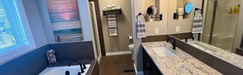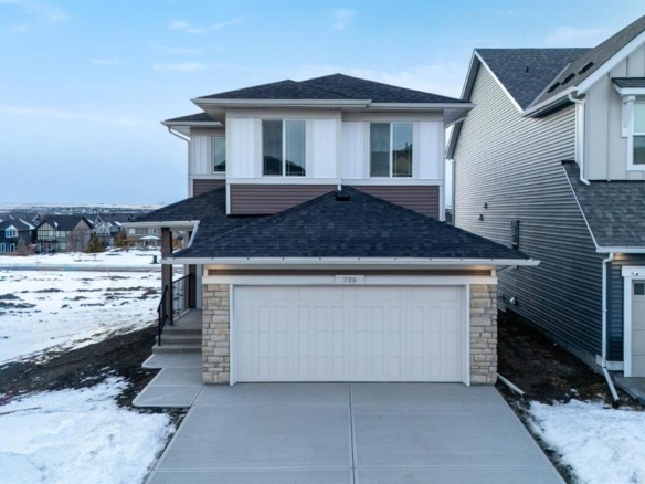 Offered for the first time, this exceptional two-storey home is truly better than a show home. Thoughtfully upgraded and impeccably maintained, it showcases high-end finishes throughout, including upgraded flooring, designer light fixtures, and matching granite countertops across the home. This home is pristine—completely move-in ready with no compromises. The main floor welcomes you with an inviting front entrance, convenient two-piece bathroom, and a dedicated laundry area. The open-concept layout flows seamlessly into a stunning kitchen featuring a massive island, a rare walk-in pantry (seldom found in newer homes), and a full suite of upgraded stainless steel appliances, including a gas stove, microwave hood fan, fridge, and dishwasher. The dining area easily accommodates a large table, making it ideal for entertaining. Cozy up in the bright living room, anchored by a gas fireplace and surrounded by large windows that flood the space with natural light and beautiful outdoor views. South exposure means warm, natural light all year long. Upstairs, you will find three spacious bedrooms, including a luxurious primary retreat with a dreamy walk-in closet and a spa-inspired five-piece ensuite. The main bathroom is equally impressive, offering dual sinks and a separate shower—perfect for busy households. The professionally finished basement elevates this home even further, featuring upscale finishes throughout. It includes a gorgeous three-piece bathroom with a massive walk-in shower, a large office (could be an additional bedroom) with a big window and oversized closet, and a comfortable family room with its own fireplace. A full wall of custom cabinetry with a sink adds incredible flexibility for entertaining, hobbies, or extended family living. Outside, enjoy a sunny south-facing backyard with a huge deck designed for entertaining and relaxation. The heated and finished attached garage completes this impressive package. Let’s talk about the LOCATION. This home is perfectly positioned one block from Herons Crossing School, across the street from Reunion Arch Park and Reunion West Playground, and just a quick walk to Reunion Pond. With ample parking options and minutes to groceries, gas stations, and restaurants, this is a location that truly delivers everyday convenience and lifestyle. This is an incredible opportunity and an amazing way to start the New Year in a breathtaking home.