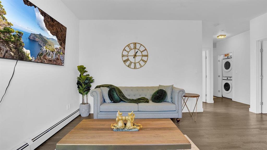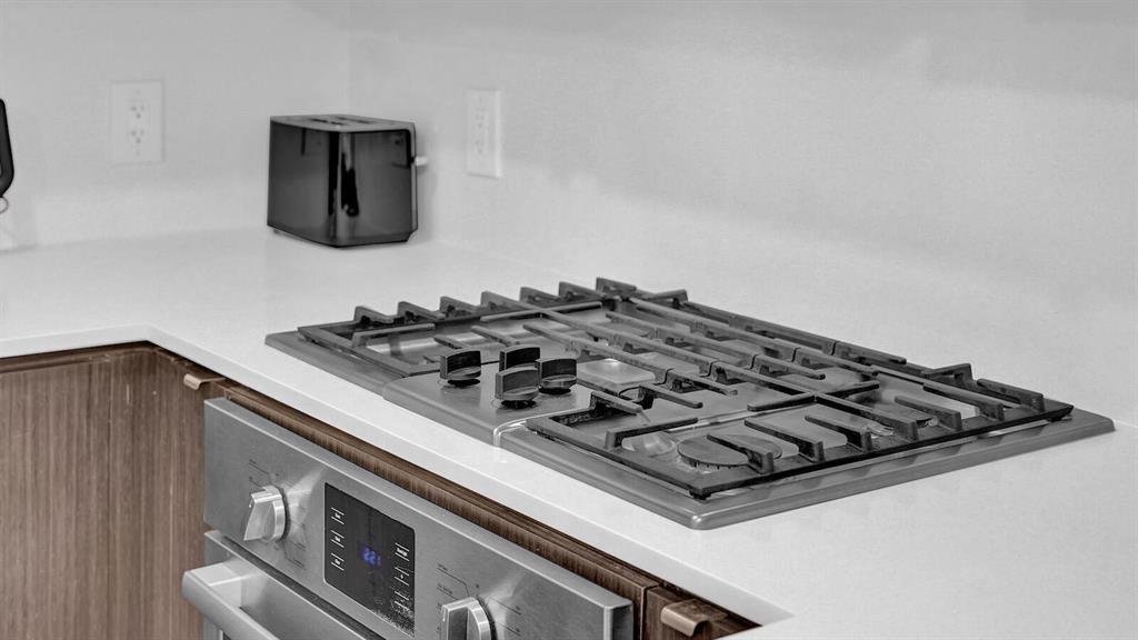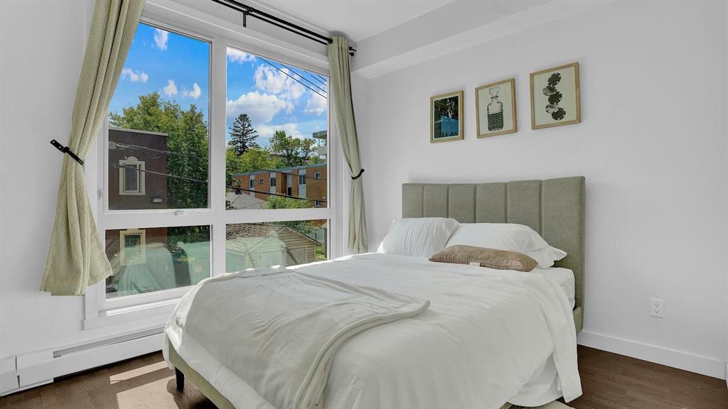 Introducing an exceptional real estate opportunity. Welcome to this stunning 2 bed/2 bath downtown view condo, complete with underground parking and storage. This unit offers an amazing layout and is equipped with all the builder upgrades, making it arguably the best in the building. As you enter, you’ll be captivated by high ceilings and double stacked windows, creating a bright and spacious atmosphere. The open floor- plan is thoughtfully designed to maximize space and comfort, providing an executive feel. Large primary bedroom, unit has breathtaking downtown views and features a walk-through closet leading to a spa-inspired en-suite bathroom. The second bedroom and bathroom are conveniently separated by the open concept living area, ensuring privacy and functionality. This unit offers a range of impressive features, including engineered hardwood floors, quartz counters, a gas range, undermount lighting in the bathrooms, air-conditioning, and in-suite laundry. Enjoy the outdoors from the corner balcony with a gas line for your barbecue. Located in a well-managed and pet-friendly building, this condo is situated in one of the most vibrant areas of the city. With the river, numerous restaurants, nightlife, and shopping on 17 Ave just steps away, you’ll experience the finest in inner-city living.