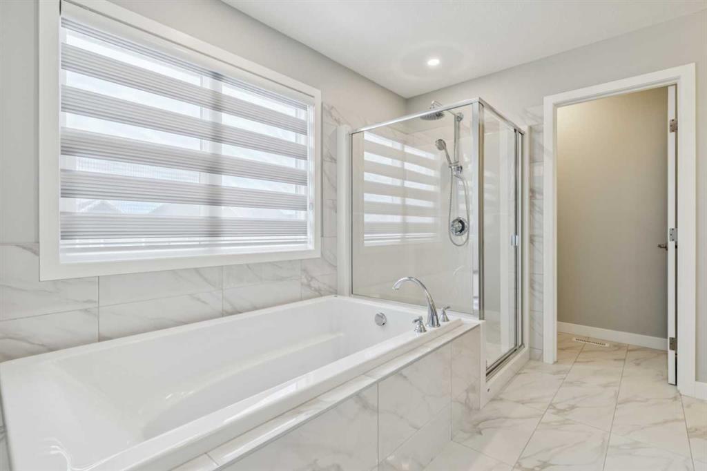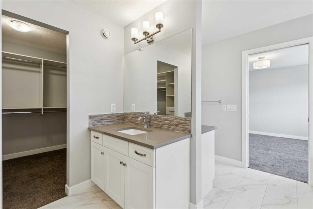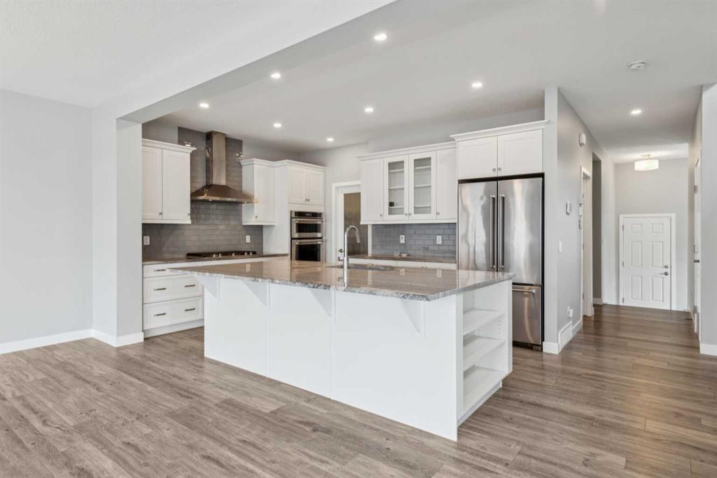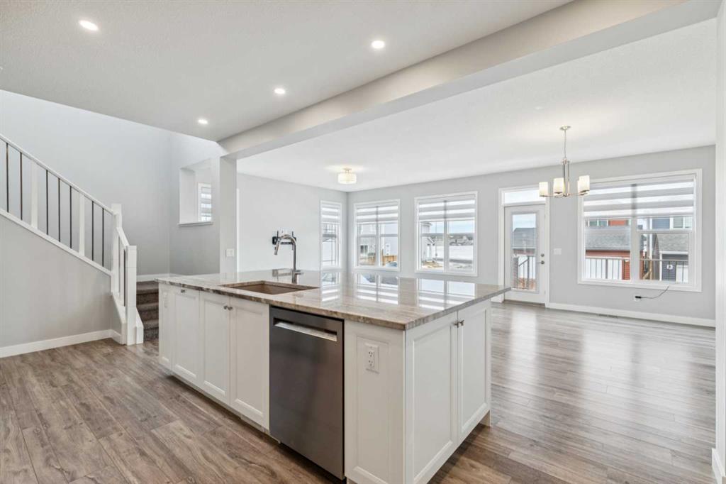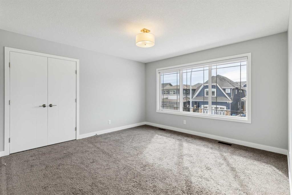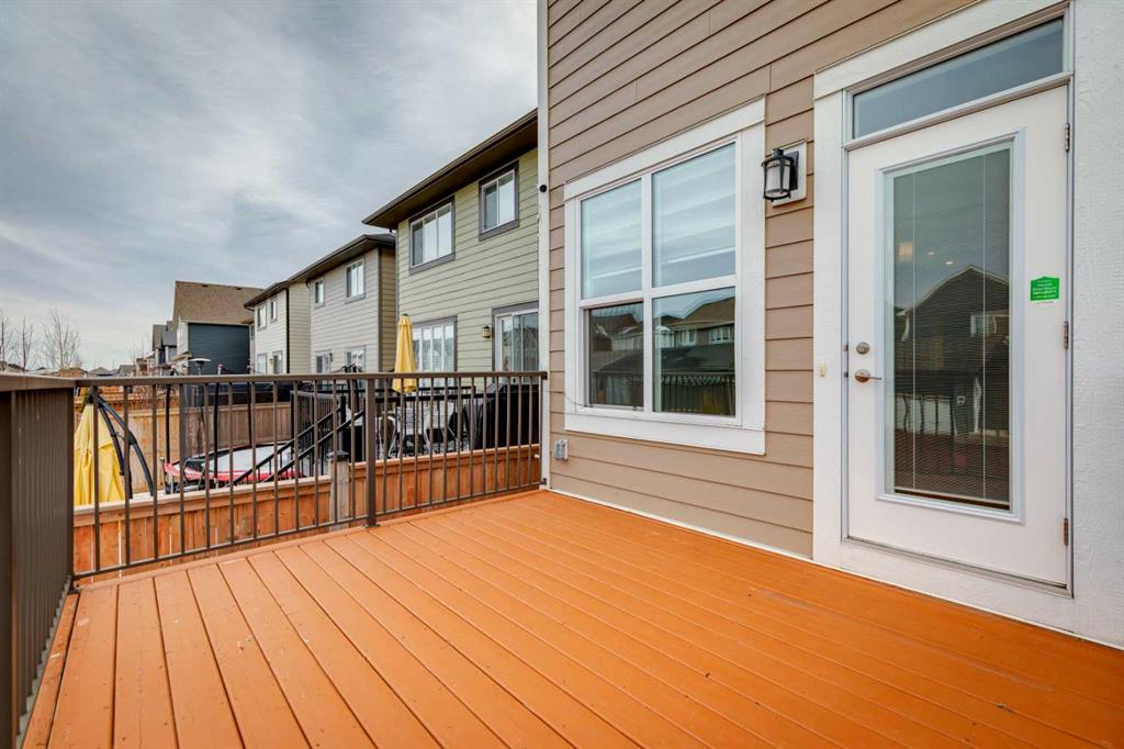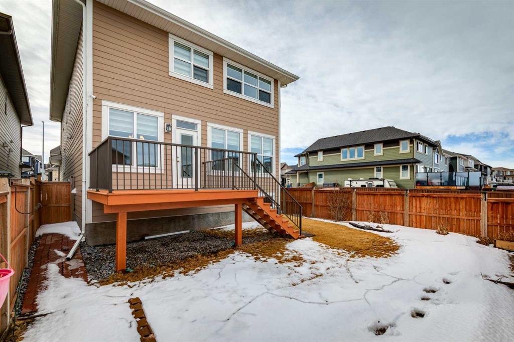 Lake living in Mahogany ~ Located in Calgary’s sought-after lake community of Mahogany, this well-maintained four-bedroom, three-bathroom home offers a practical layout, quality upgrades, and a desirable corner lot location across from green space. CORNER LOT LOCATION ACROSS FROM GREEN SPACE provides added privacy and open views in a quiet, family-friendly setting. The main floor is designed for both flexibility and function, featuring a rare bedroom with direct access to a full cheater ensuite via a pocket door—MAIN FLOOR BEDROOM WITH FULL BATH is ideal for guests, multigenerational living, or a private office. The open-concept layout provides clear sightlines between the living and dining areas, while the kitchen is well-equipped with white cabinetry, granite countertops, a gas cooktop, built-in oven and microwave, hood fan, dishwasher, and a granite sink, complemented by a large central island and walk-in corner pantry for ample prep space and storage. Upstairs includes three generously sized bedrooms, including a primary suite with private ensuite, along with bathrooms finished with quartz countertops, custom built-in closet organizers in all bedrooms, and a convenient upper-level laundry area with washer and dryer; select window coverings, including remote-controlled options, are already installed. SEPARATE SIDE ENTRANCE WITH FUTURE BASEMENT POTENTIAL is supported by a completed stairwell and 9-foot basement ceilings, offering excellent opportunity for future development. Additional upgrades include TWO FURNACES, TANKLESS WATER HEATER, AND SOLAR PANELS, improving efficiency and long-term operating costs, along with a basement freezer and an attached garage roughed-in for a gas heater. Outdoor features include a balcony and a spacious backyard with rear lane access, providing additional flexibility. WALKING DISTANCE TO LAKE, BEACH CLUB, SCHOOLS, AND AMENITIES ensures convenient access to Mahogany Lake, wetlands, pathways, schools, shopping, dining, and nearby Seton amenities including South Health Campus and YMCA, with quick access to Deerfoot and Stoney Trail for an easy commute.