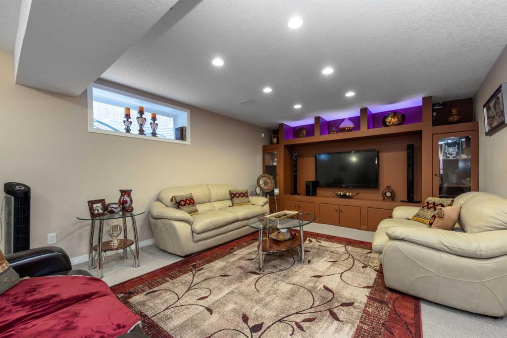 Upstairs, you’ll find a well-designed layout that includes a generous primary bedroom complete with a 4-piece ensuite and walk-in closet, along with two additional bedrooms, another full bathroom, and a spacious bonus room perfect for a cozy family lounge, study area, or home theatre setup. The fully developed basement extends the living space even further with a large recreational room, a fourth bedroom, and yet another full 4-piece bathroom – an ideal space for extended family, guests, or even a home gym or hobby room. The details of the entertainment shelving unit offer storage, space for décor and serve as the perfect center for your entertainment needs. It’s the perfect relaxing spot you have been waiting for!