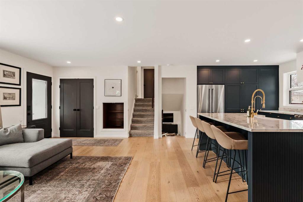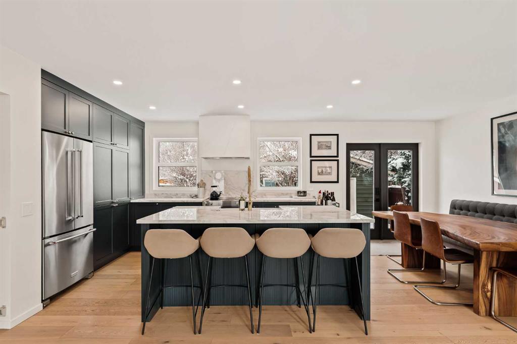 Welcome to a home that truly feels like home. Tucked away on a quiet cul-de-sac in one of Calgary’s most sought-after communities, this lovingly renovated 4-level split in Varsity has been cherished by the same family for the past eight years. Steps from the green space behind St. Vincent de Paul, Marion Carson Elementary, and F.E. Osborne Junior High, this 4-bedroom, 3-bath home offers over 2,100 sq. ft. of bright, beautifully curated living space. From the moment you walk in, you’ll notice the abundance of natural light – it’s the kind of house where you rarely need to turn on a light switch. The main floor welcomes you with an open living area, complete with a cozy gas fireplace, spacious dining room, and a thoughtfully designed kitchen featuring Hale Navy cabinetry by Marvel Cabinetry, brass hardware from Rejuvenation, a hidden appliance garage, and a coffee station that makes mornings feel extra special. Upstairs, you’ll find three bedrooms and a full bathroom, including a primary suite with its own 2-piece ensuite. Every bathroom has been beautifully updated with marble flooring, sage green cabinetry, and timeless tile work that blends luxury with warmth. On the lower level, a large family room invites game nights and movie marathons, alongside a stunning spa-like bathroom with a soaker tub and walk-in shower that feels like your own private retreat. The basement adds even more functional space with a laundry/mechanical area, tons of storage, a home office/den, and a fourth bedroom. Step outside to your sun-soaked backyard, where long summer evenings are spent around the fire pit or relaxing on the brick patio and elevated California concrete pad. There’s still plenty of lawn for kids and dogs to play and the sunsets here are truly something special. A double garage with upgraded lighting and electrical rounds out this perfect family home. This location is unbeatable – walk to schools, Varsity Ravine off-leash park, Bowmont Environmental Park, Market Mall, and University District, or quickly commute to the Foothills Hospital, Children’s Hospital, and the University of Calgary. The neighbours? Simply the best – the kind that make it hard to say goodbye. Lovingly maintained, beautifully updated, and ready for its next chapter -this Varsity gem is waiting to welcome its next family home. Notable updates include: new roof, R60 attic insulation, engineered hardwood flooring, fully renovated kitchen, flat ceilings installed, Hardie board siding (front of house), new front door, gas fireplace installed on main floor, new bathrooms (all three), new carpet, new garage door and opener, new dryer, new closet doors, “California” finished concrete patio, power upgrade for hot tub, furnace, gas line to BBQ added, new electrical panel.