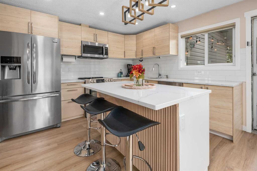 *****Open house this Sunday 2-4pm***** Welcome to this charming bi-level detached family home in the desirable Woodbine community. Step inside to a bright, open living room featuring vaulted ceilings and expansive windows that fill the space with beautiful natural light. The upper level has been upgraded with brand new flooring, classic subway tile backsplash and modern quartz countertop. This stunning home offers 2 bedrooms and 2 bathrooms on the main floor, plus a fully finished basement with an additional bedroom and full bathroom.. The primary bedroom is generously sized and features great size windows that brighten the room with abundant daylight, creating a bright and airy atmosphere, located at the end of the hallway, it serves as a private retreat complete with a 5-piece ensuite bathroom. The second bedroom is conveniently situated nearby, along with an additional full bathroom just outside the door for added convenience. Just off the kitchen, you’ll find a beautiful deck that’s perfect for entertaining, along with a spacious backyard ideally for children to play and families to enjoy outdoor time together. This property also offers exceptional convenience with a double attached garage at the front of the home for easy access. In addition, there is an extra parking space at the back that can also be used as a RV parking, ideal for families with multiple vehicles or those who love to travel and explore. A private entrance to the basement making it a fantastic bonus that offers a full kitchen, large windows, a cozy living room and a good sized bedroom. It also includes a full bathroom and its own furnace for independent temperature control. This home is made for family memories from bedtime stories to birthday celebrations. The only thing better than owning this beautiful home is sharing it with the ones you love. Welcome home!