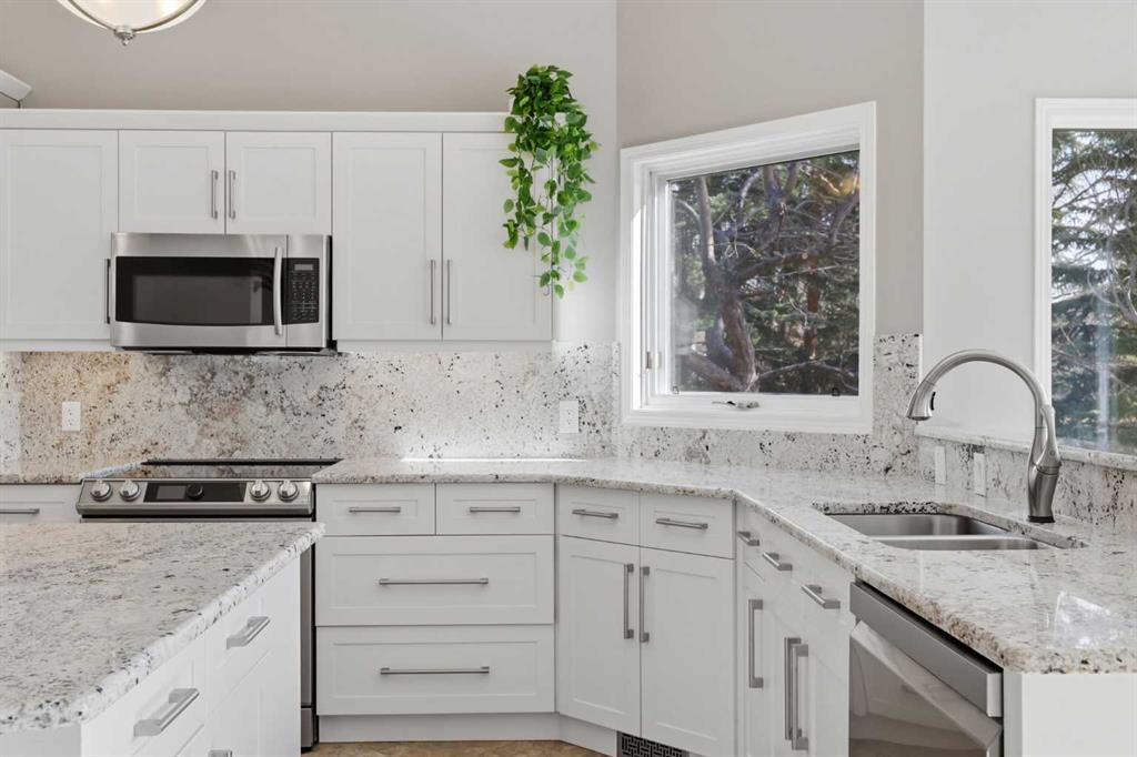 All the Poly-B has been replaced. Welcome to this beautifully updated home in the desirable Douglasdale Estates, perfectly located just one block from Fish Creek Park and the Bow River. Thoughtfully renovated from top to bottom, this 3-bedroom bungalow blends modern comfort, efficiency, and timeless design. Bright and inviting, the interior features large windows, fresh paint, and high ceilings that create an airy sense of space. The renovated kitchen showcases granite countertops, stylish cabinetry, and an easy flow into the casual dining space and attached 4 season sunroom—ideal for entertaining family and friends. Updated bathrooms and tasteful finishes throughout add to the home’s appeal. Every major system has been upgraded for efficiency and peace of mind: all Poly-B plumbing removed, new hydronic furnace and air conditioner, new hot water on demand, solar panels, and a new electrical panel. A brand-new triple-pane bay window enhances both comfort and curb appeal, while low utility costs make this home as practical as it is beautiful. The lower level is large and inviting with a natural light flooding in from the wall of south facing windows. The oversized attached double garage offers ample parking and storage, and the Gemstone outdoor lighting system adds a touch of year-round elegance. Underground automatic sprinkler system ensures all the fruit trees and perennials are healthy and beautiful. Enjoy easy access to pathways, parks, the community golf course, nearby shops and restaurants, and major highway connections. This is a bright, efficient, and wonderfully located home in one of Calgary’s most established and scenic neighbourhoods.