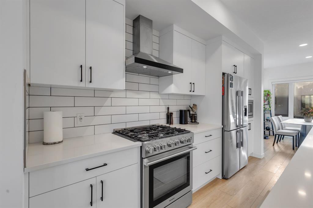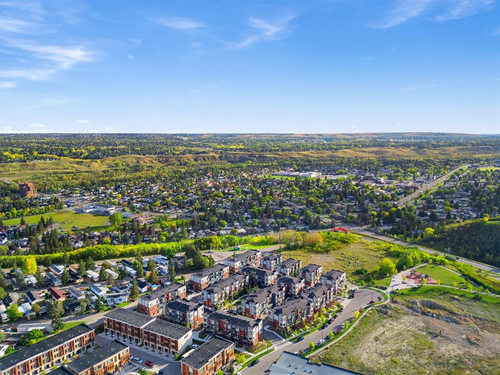 **Open House Sunday February 15th from 12::00-3:00pm** Welcome to the Amara Corner Lot Design Plan in Greenwich NW Calgary. This New York–inspired executive townhome offers 1,584 square feet of open-concept living in one of Calgary’s most desirable northwest communities. Featuring a 3-bedroom + den layout with 3.5 bathrooms, this thoughtfully designed home includes a double-wide garage with a single oversized door and a private driveway, maximizing both parking and storage. Professionally curated interior colour packages and an abundance of builder upgrades elevate the home throughout. Crafted with attention to detail, the residence showcases exceptional finishes paired with outstanding natural light. The north-facing frontage overlooks the community’s central courtyard and pathway system, while east-side and south-backing exposures flood the home with sunlight through expansive corner windows. Outdoor living is enhanced by a walkout exposed aggregate patio facing the courtyard and an elevated glass-panelled balcony, offering both privacy and scenic views. Inside, you’ll find luxury vinyl plank flooring on the main and lower levels, quartz countertops on all floors, 9-foot ceilings throughout, and stainless steel upgraded gourmet appliances, including a gas stove and chimney hood fan. High-efficiency features include triple-pane windows, a Navien on-demand tankless hot water system, and a heat recovery ventilator (HRV). This Amara corner plan is further enhanced by the Builder Show Home Package, adding a custom third full bathroom on the lower level, black interior door and bathroom accents, 8-foot solid interior passage doors, a full tile backsplash with custom grout design, and window coverings throughout. One of Landmark Homes’ most sought-after floor plans, this layout offers a functional galley kitchen with dedicated living and dining areas—perfect for entertaining and maximizing usable space. The exterior design channels classic New York brownstone style with James Hardie paneling, full brick accents, and stucco finishes for a contemporary, low-maintenance lifestyle. Ideally located just 18 minutes from downtown Calgary, 12 minutes to the University of Calgary and Foothills Hospital, under an hour to Banff and Canmore, and within walking distance to the new Calgary Farmers’ Market, this home offers unmatched convenience and community living. Book your showing today and discover what makes Greenwich NW an exceptional place to call home.