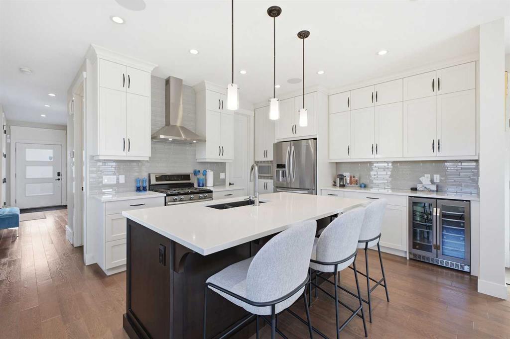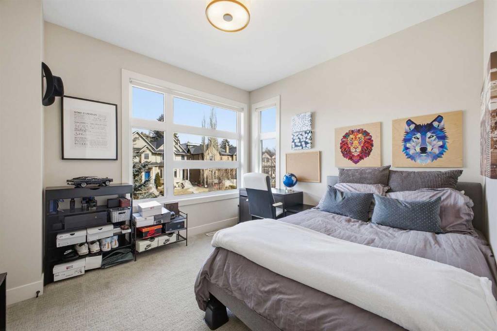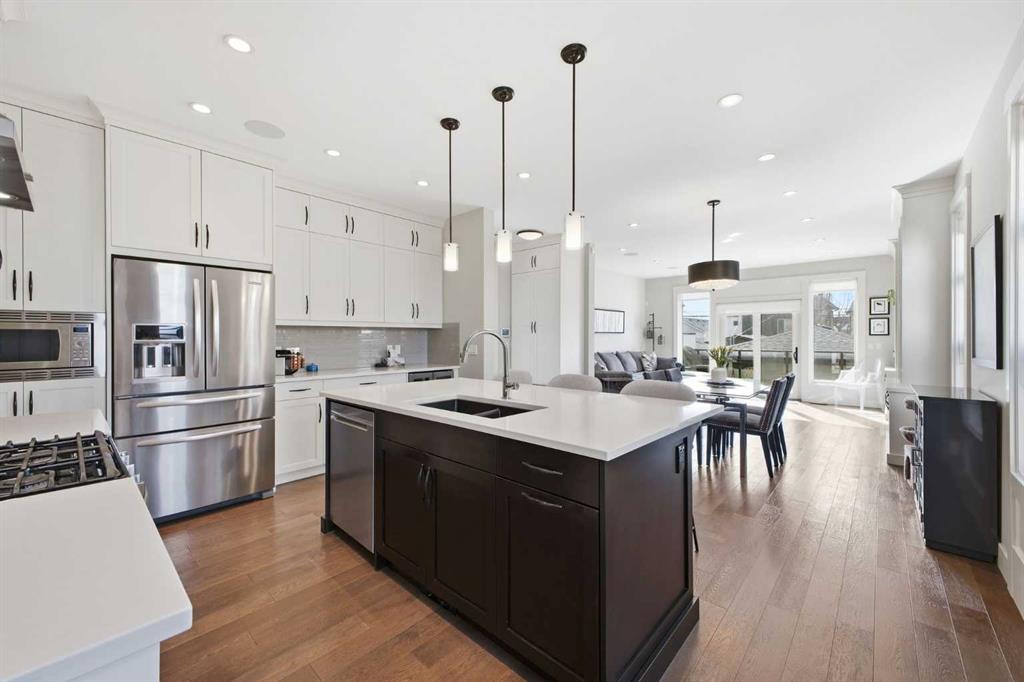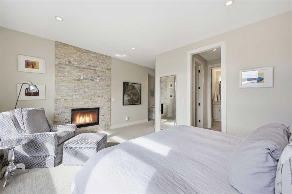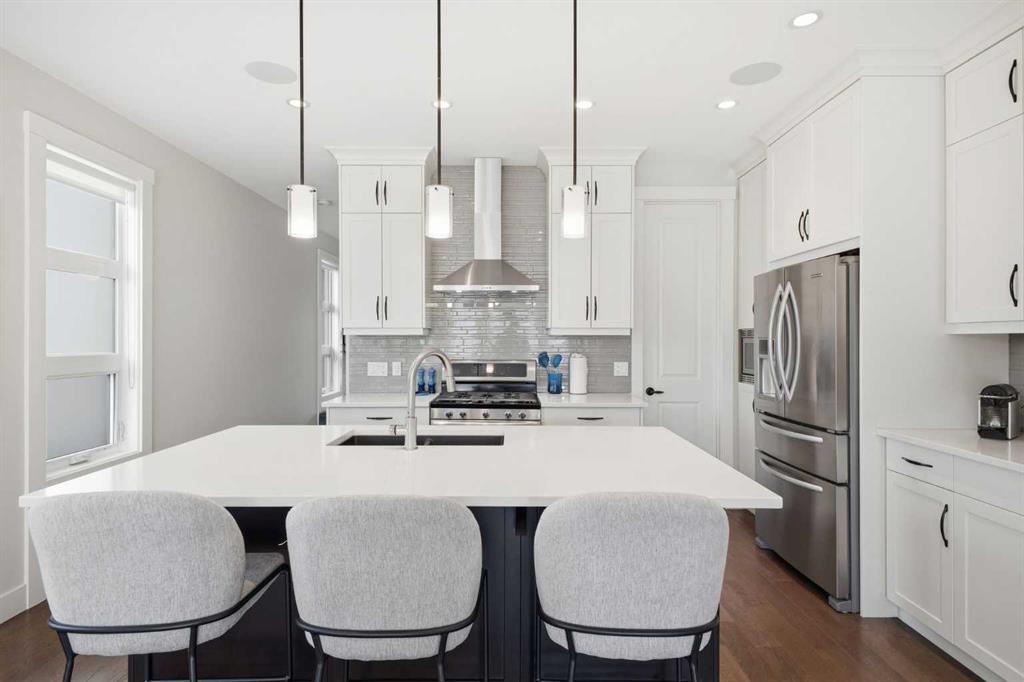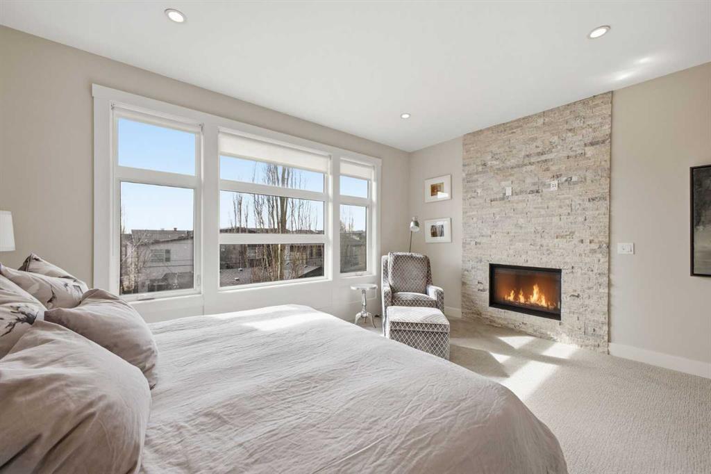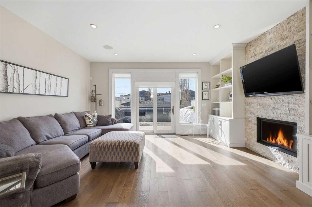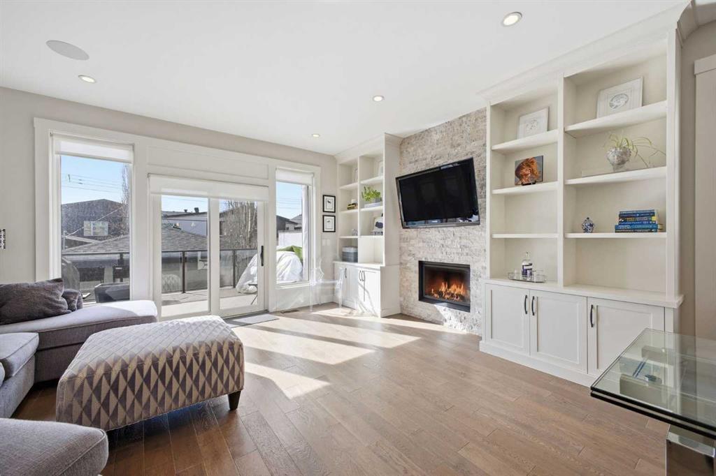 OPEN HOUSE SATURDAY, MARCH 21ST FROM 1-3 PM & SUNDAY, MARCH 22ND FROM 1-4 PM. Centrally located in the sought after inner city community of Richmond, this striking modern 3+1 bedroom home offers over 3,000 sq. ft. of thoughtfully designed living space, including a fully developed walk out basement. The open concept main level is bright and inviting, featuring hardwood floors, lofty ceilings, and an abundance of natural light. The chef inspired kitchen is beautifully finished with quartz countertops, a large island with eating bar, stainless steel appliances, and exceptional storage, including a walk in pantry. Adjacent to the kitchen, the spacious dining area easily accommodates family meals and entertaining. The generous living room is a true focal point, highlighted by a floor to ceiling fireplace with custom built ins. A private front office with elegant wainscoting and a large picture window offers the perfect work from home space. A convenient 2 piece powder room completes the main level. Upstairs, you’ll find three well appointed bedrooms, a 4 piece main bathroom, and upper level laundry. The primary retreat is a luxurious escape, featuring a cozy fireplace, dual walk in closets, and a spa like 5 piece ensuite with dual vanities, a deep soaker tub, and a separate shower. The fully developed walk out basement is ideal for relaxing or entertaining, offering a large family/media room complete with projection TV, screen, and wet bar—perfect for movie or game nights. A fourth bedroom and 4 piece bathroom complete this level. Additional highlights include built in speakers, a sun filled south facing backyard with deck and covered patio, and direct access to the double detached garage. Unbeatable location—just minutes to Marda Loop, schools, shopping, public transit, and with quick access to Crowchild Trail. This exceptional home seamlessly blends modern style, comfort, and inner city convenience.