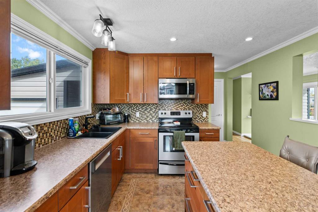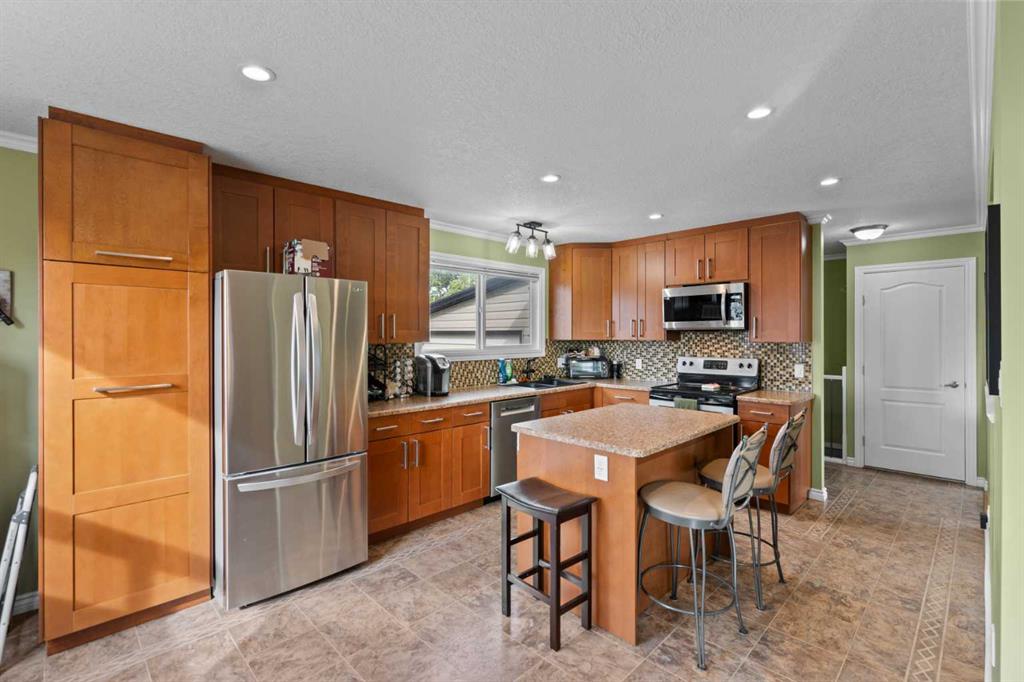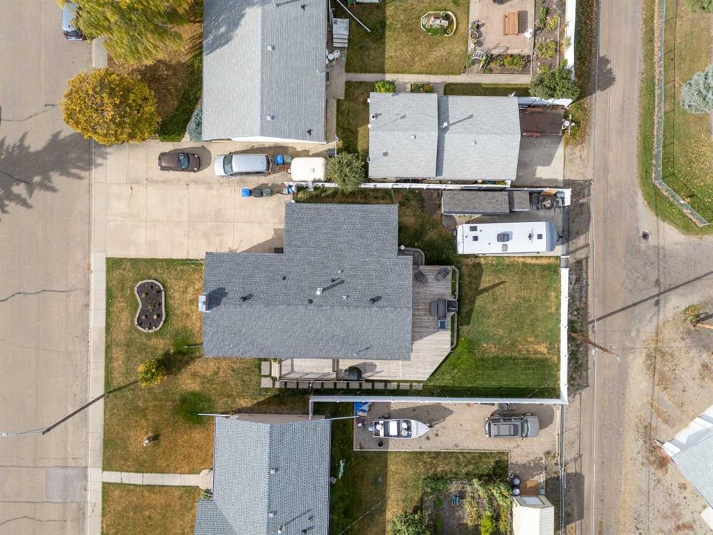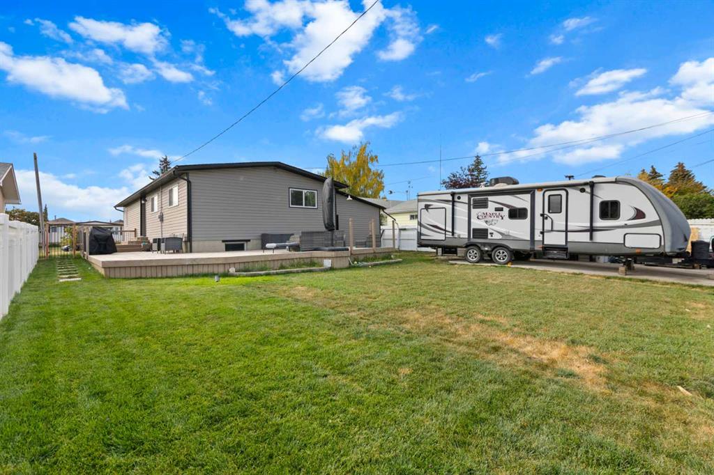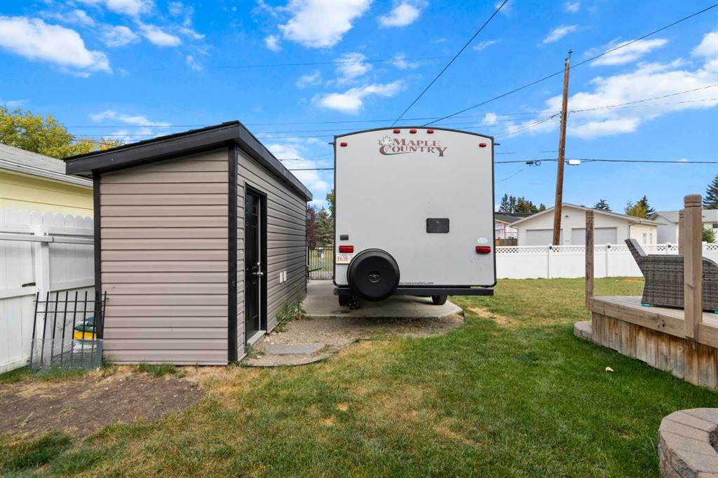Heading outside there’s a long double wide driveway which leads you to the oversized single attached garage. A huge yard includes a huge wrap around deck for outside entertaining, a no maintenance vinyl fence and a large shed. The yard is located on a T for the back lane so there is lots of maneuvering room to move your RV onto the dedicated concrete parking pad and it is all finished with a set of iron gates that provide the security you will want.