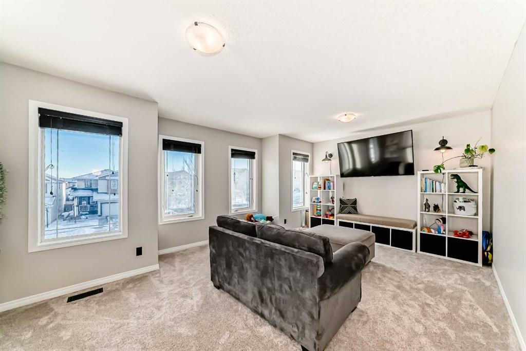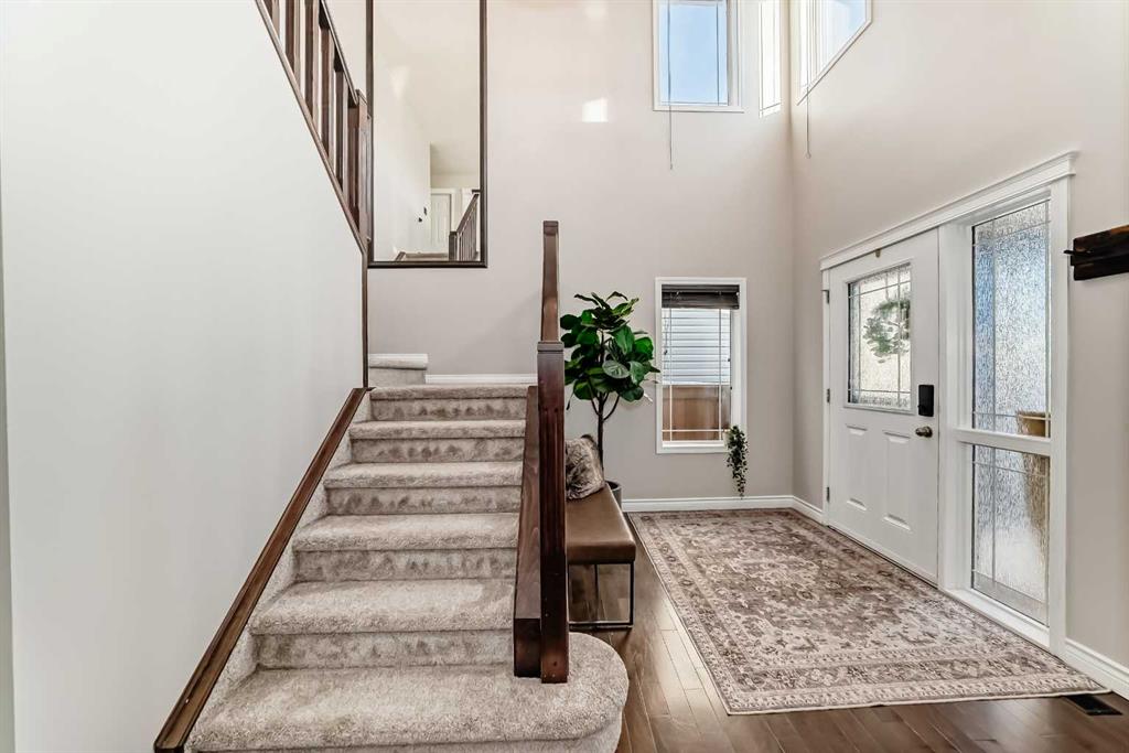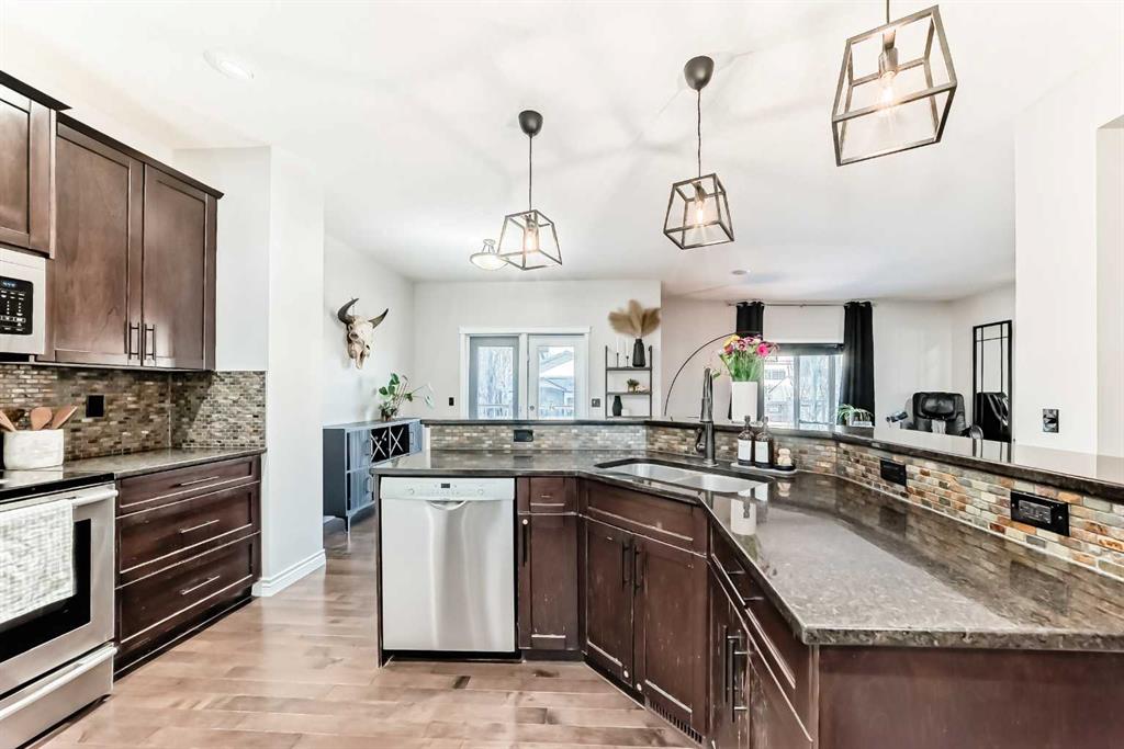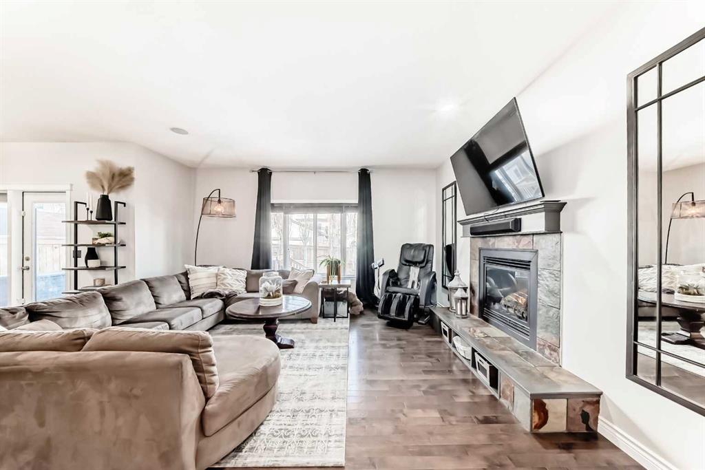 Welcome to this beautifully maintained detached home in the sought after community of Reunion, a family-friendly neighbourhood close to schools, parks, and scenic pathways. Offering over 2,600 sq ft of finished living space, this four bedroom, three and a half bathroom home is thoughtfully designed for comfortable everyday living and effortless entertaining. A large entrance with soaring ceilings and a spacious foyer creates a stunning first impression and flows seamlessly into the open concept main floor. At the heart of the home, the kitchen features a large two-tier wet island, walkthrough pantry, stainless steel appliances, and easy connection to the dining and living areas, ideal for gatherings and busy family life. Built-in speakers and pre-wiring for exterior speakers enhance your hosting experience, while fresh paint and brand new carpet throughout provide a bright, move-in-ready feel. Located just off the double-attached insulated garage, the main floor laundry room seamlessly doubles as a functional mudroom, creating the perfect drop zone for busy families. This well designed space offers a stacked washer and dryer, custom built-in cabinetry, a laundry sink, and convenient garage access with built-in storage racking to keep everything organized. Upstairs, a spacious south-facing bonus room is filled with natural light, offering the perfect retreat for movie nights or a kids play space. The primary bedroom features a trendy feature wall, a large walk-in closet, and a private ensuite complete with a soaker tub and separate shower. Two additional bedrooms, each with their own pinterest-inspired accent walls, add personality and charm to the upper level. The partially developed basement adds valuable living space with a generous fourth bedroom, a four-piece bathroom, a finished office or common area, and ample storage, with flexibility to further personalize if desired. Step outside to enjoy the beautifully landscaped backyard, designed for both relaxation and play, featuring a large deck, dog run, shed, mature trees, fire pit, raspberry bushes, and cedar planters. Don’t wait, come take a look and see how this is an exceptional opportunity to own a spacious, family-focused home in one of Airdrie’s most desirable communities.