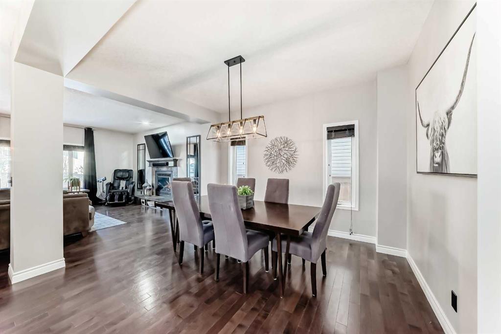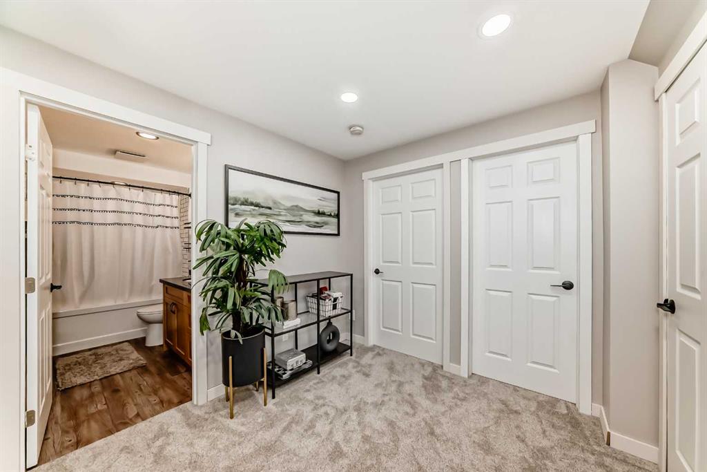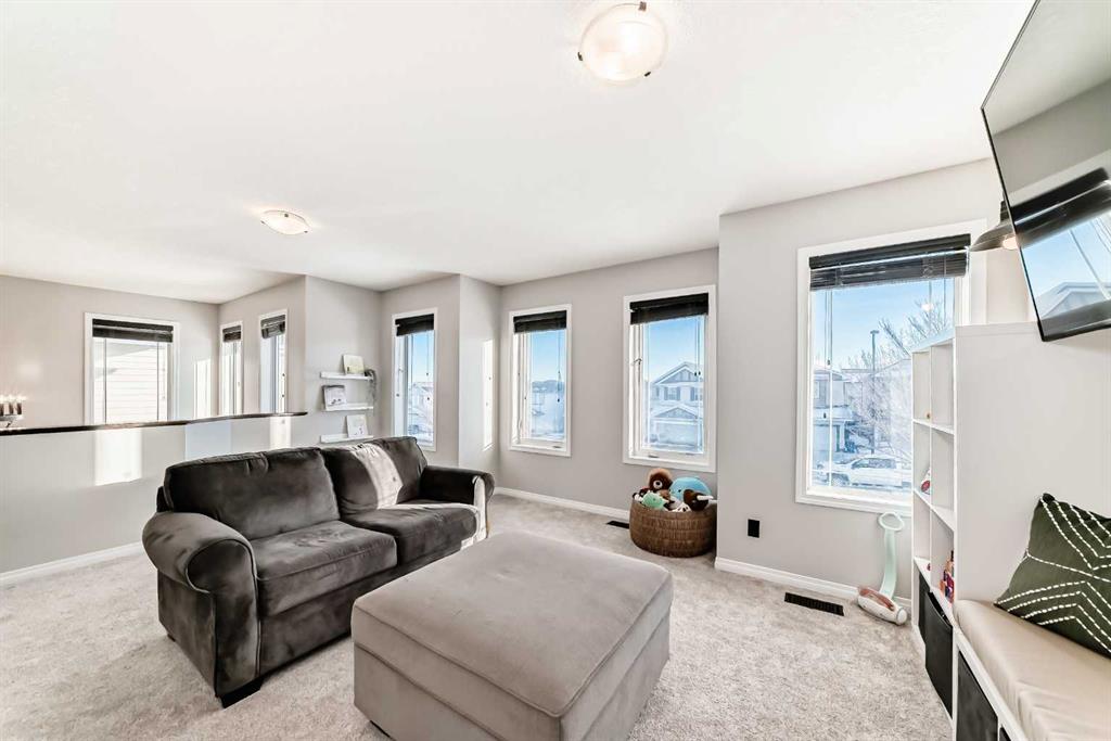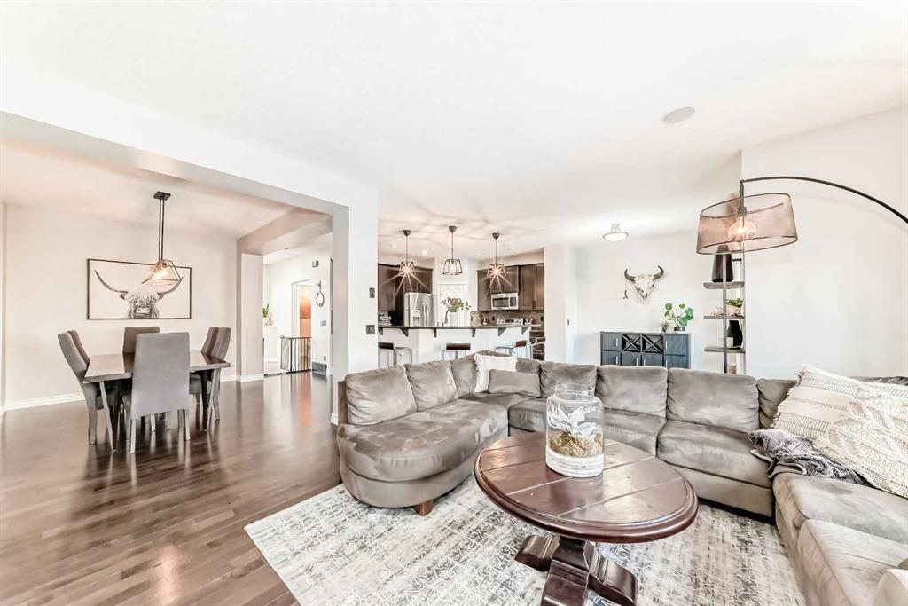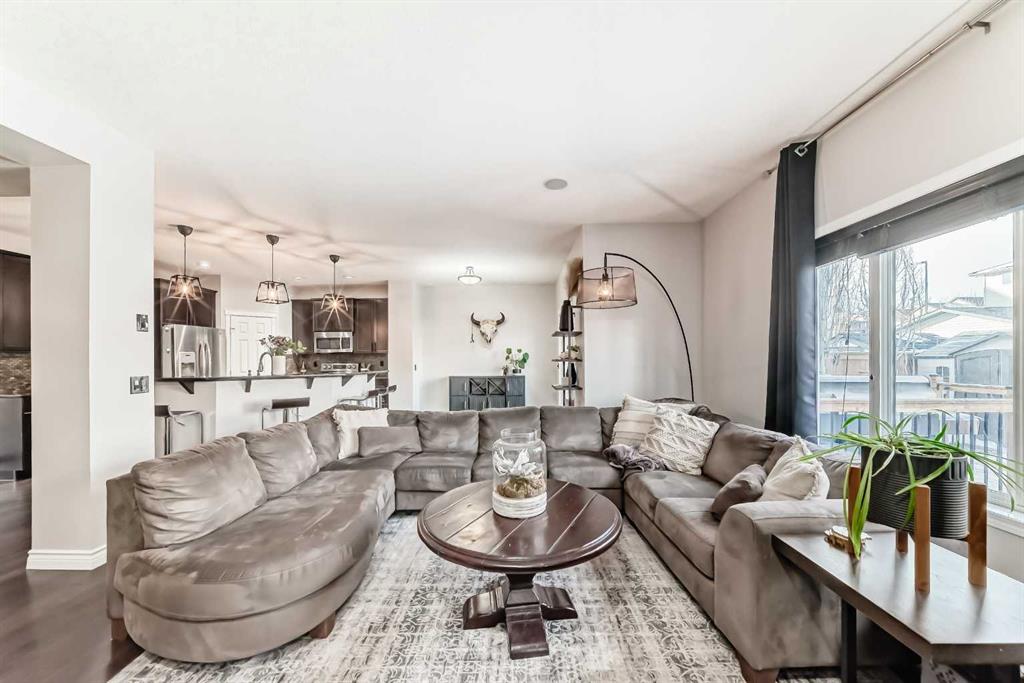 Welcome to this beautifully maintained detached home in the sought after community of Reunion, a family-friendly neighbourhood close to schools, parks, and scenic pathways. Offering over 2,600 sq ft of finished living space, this four bedroom, three and a half bathroom home is thoughtfully designed for comfortable everyday living and effortless entertaining. A large entrance with soaring ceilings and a spacious foyer creates a stunning first impression and flows seamlessly into the open concept main floor. At the heart of the home, the kitchen features a large two-tier wet island, walkthrough pantry, stainless steel appliances, and easy connection to the dining and living areas, ideal for gatherings and busy family life. Built-in speakers and pre-wiring for exterior speakers enhance your hosting experience, while fresh paint and brand new carpet throughout provide a bright, move-in-ready feel. Located just off the double-attached insulated garage, the main floor laundry room seamlessly doubles as a functional mudroom, creating the perfect drop zone for busy families. This well designed space offers a stacked washer and dryer, custom built-in cabinetry, a laundry sink, and convenient garage access with built-in storage racking to keep everything organized. Upstairs, a spacious south-facing bonus room is filled with natural light, offering the perfect retreat for movie nights or a kids play space. The primary bedroom features a trendy feature wall, a large walk-in closet, and a private ensuite complete with a soaker tub and separate shower. Two additional bedrooms, each with their own pinterest-inspired accent walls, add personality and charm to the upper level. The partially developed basement adds valuable living space with a generous fourth bedroom, a four-piece bathroom, a finished office or common area, and ample storage, with flexibility to further personalize if desired. Step outside to enjoy the beautifully landscaped backyard, designed for both relaxation and play, featuring a large deck, dog run, shed, mature trees, fire pit, raspberry bushes, and cedar planters. Don’t wait, come take a look and see how this is an exceptional opportunity to own a spacious, family-focused home in one of Airdrie’s most desirable communities.