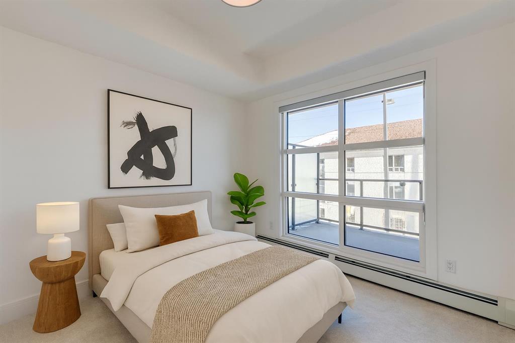 Off the main living space is a generous-sized primary bedroom, featuring large windows and a spacious closet. Just steps away, the four-piece bathroom is finished with beautiful modern touches, including elegant tile work and contemporary fixtures, offering a spa-like experience right at home.