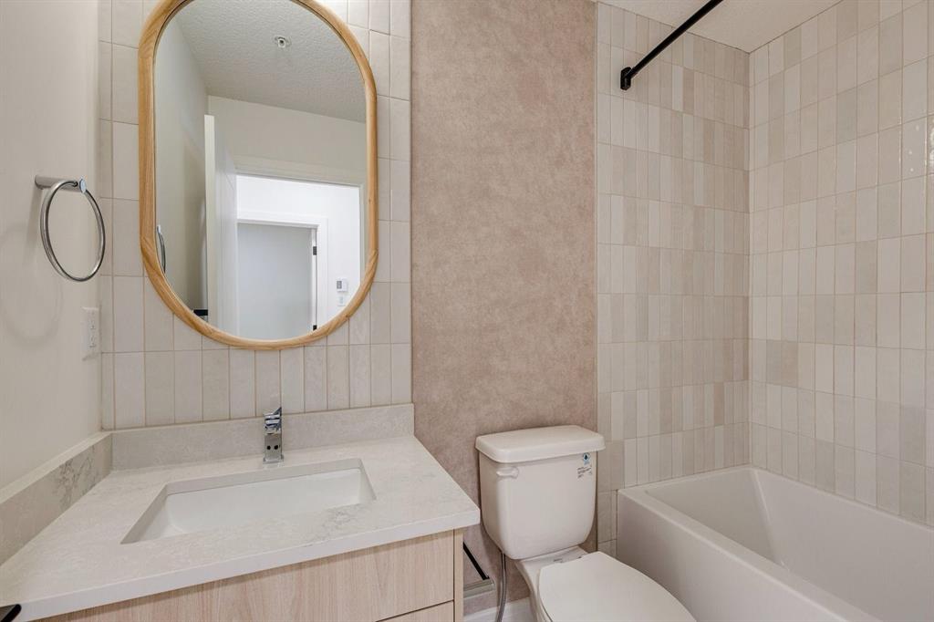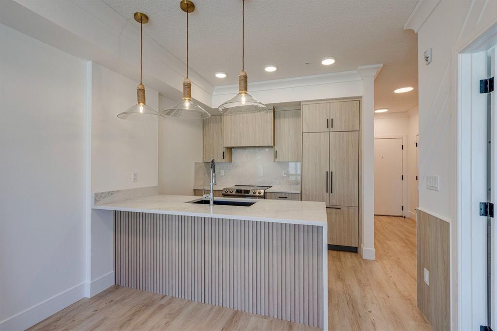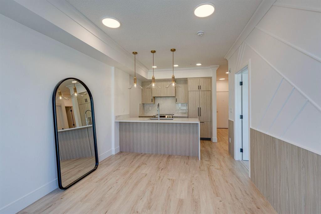 Welcome to an exquisite 1-bedroom plus den condo in the sought-after community of Currie Barracks, where classic design meets modern comfort. Situated on the second floor of a quiet, upscale building, this home features a warm, airy color palette, thoughtfully curated finishes, and an inviting atmosphere perfect for professionals or anyone seeking refined, low-maintenance living.