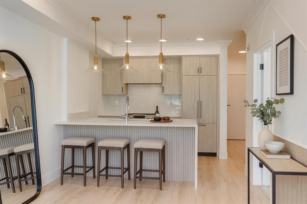 Additional conveniences include in-unit laundry with built-in storage, rough-in for air conditioning, and one titled underground parking stall with pay-per-use EV charging stations, offering comfort and sustainability in equal measure.