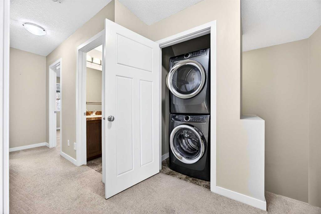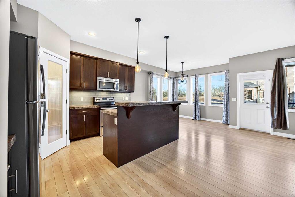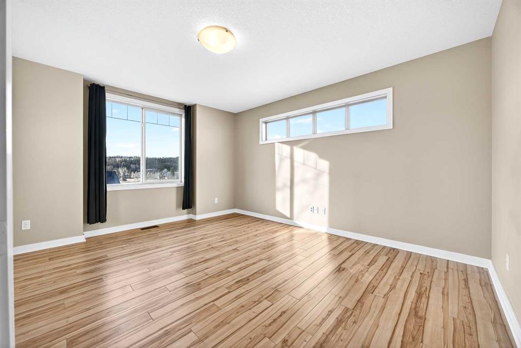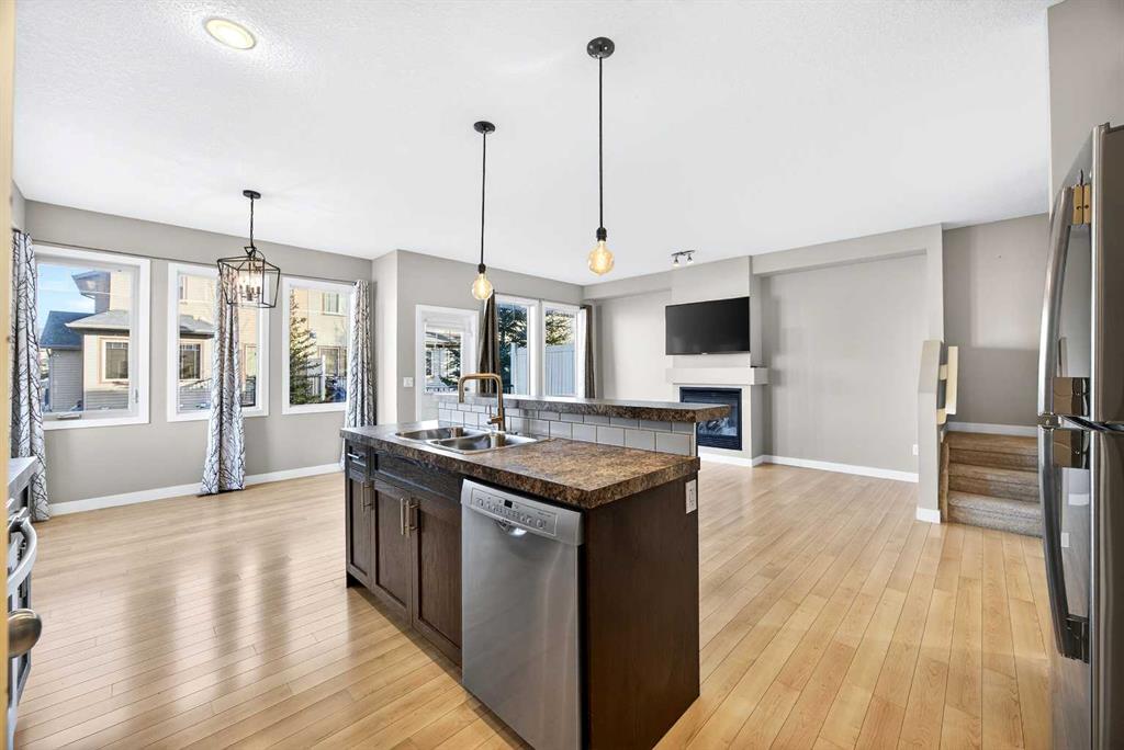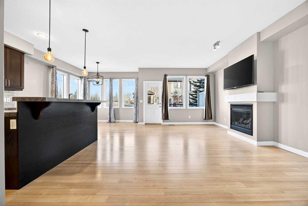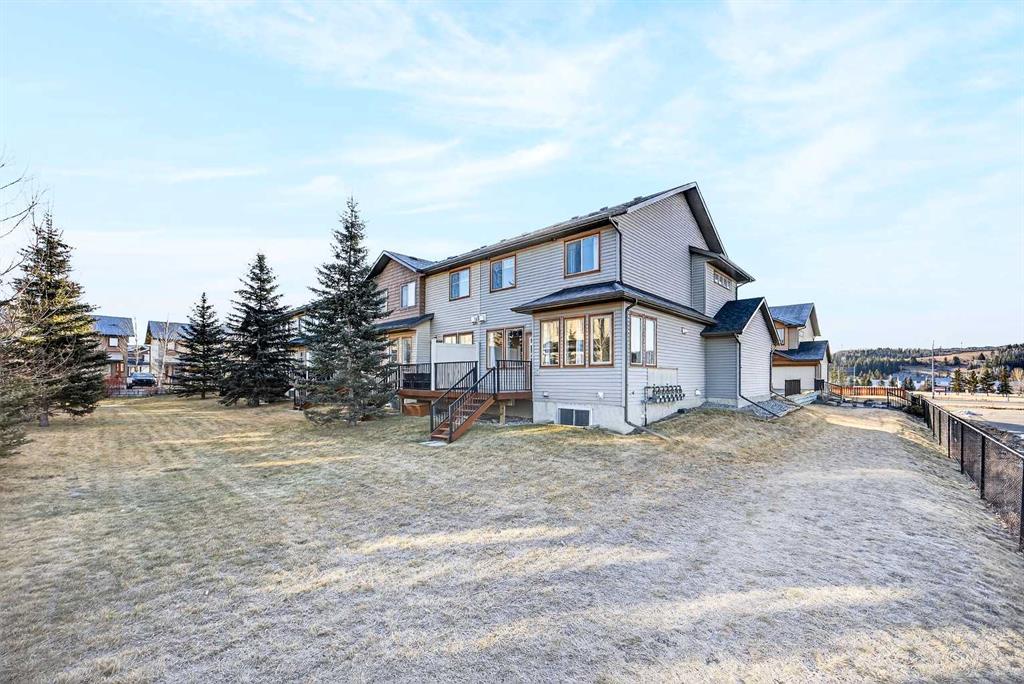 CORNER LOT | DOUBLE ATTACHED GARAGE | AMPLE WINDOWS | 4 BEDROOMS | GOLF COURSE VIEW! Enjoy all of these amazing features of this beautiful end unit town house featuring a multitude of space and convenience in River View! Situated directly beside the COCHRANE GOLF CLUB, this gorgeous town house offers a tranquil setting inside the development surrounded by a ton of greenspace! Enter into a sizeable foyer discreetly housing the half bath on one side and garage entrance door on the other. Ahead, enter into a spacious and bright OPEN PLAN featuring a fabulous KITCHEN with a CORNER WALK IN PANTRY, LARGE ISLAND WITH BREAKFAST BAR AND PENDANT LIGHTING, FULL HEIGHT WOOD CABINETRY with UNDER CABINET LIGHTING, NEWER STAINLESS STEEL APPLIANCES and tons of counter space for meal preparation. The DINING ROOM is surrounded by large windows highlighting the serene view of the beautiful grounds of the golf course with easy access to the deck with gas line for easy grilling! Directly across is the roomy LIVING ROOM with GAS FIREPLACE and ample room for larger furniture for comfort and entertaining. The UPPER LEVEL features the PRIMARY BEDROOM with gorgeous laminate flooring, 4 PIECE ENSUITE BATH with a soaker / jet tub, sink with extra counter space, shower with rainfall showerhead and LARGE WALK IN CLOSET. Two ADDITIONAL BEDROOMS are both a great size and feature a double door closet for the young fashionistas in the family! An additional 4 PIECE BATH and LAUNDRY with FULL SIZE STACKED WASHER and DRYER complete this level. Still need additional space for your family…….enjoy the FULLY DEVELOPED LOWER LEVEL featuring a great sized FAMILY ROOM – RECREATION AREA, 4TH BEDROOM, 4 PIECE BATH, UTILITY ROOM and additional STORAGE AREA! THIS TOWNHOUSE IS LOADED and offers phenomenal value in sought after River View! Surrounded by all levels of amenities, shopping, schools, professional services, golf, ball park and easy commutes to major highways, this exceptional home is perfect for a family large or small. COME SEE…..