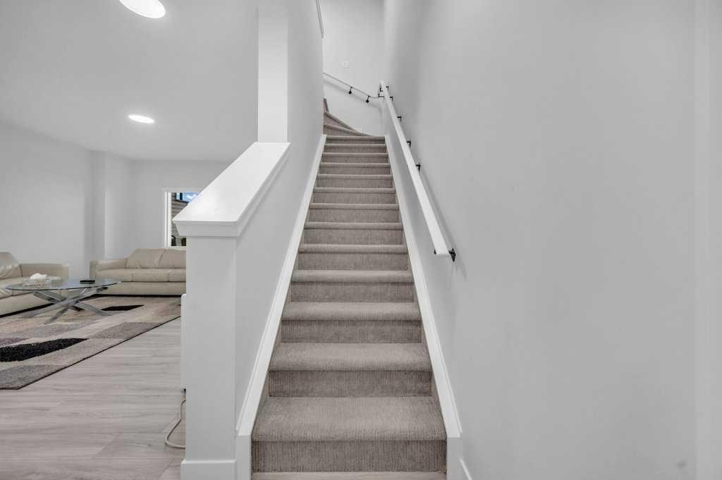 Welcome to this stunning, modern 4-bedroom, 3.5-bathroom townhouse located in the lively, family-oriented community of Cornerstone, perfectly positioned backing onto peaceful wetlands. This bright and spacious end unit features an open-concept layout with plenty of natural light from extra windows and elegant contemporary finishes throughout. The stylish kitchen showcases quartz countertops, stainless steel appliances, and generous cabinetry for all your storage needs. The single attached garage adds both convenience and security. Upstairs, you’ll find three spacious bedrooms ideal for families or guests. The main level includes a versatile fourth bedroom with its own 3-piece bathroom, perfect as a home office, formal living space, or even a potential future wet bar setup. The basement, complete with a separate entrance, offers flexibility for an additional bedroom or recreation area. Set in a welcoming neighborhood filled with parks, playgrounds, and walking paths, this home is also just minutes from shopping, restaurants, schools, and major roadways making everyday living and commuting effortless. Move-in ready and loaded with upgrades, this beautiful Cornerstone townhouse offers the perfect blend of comfort, functionality, and modern design.