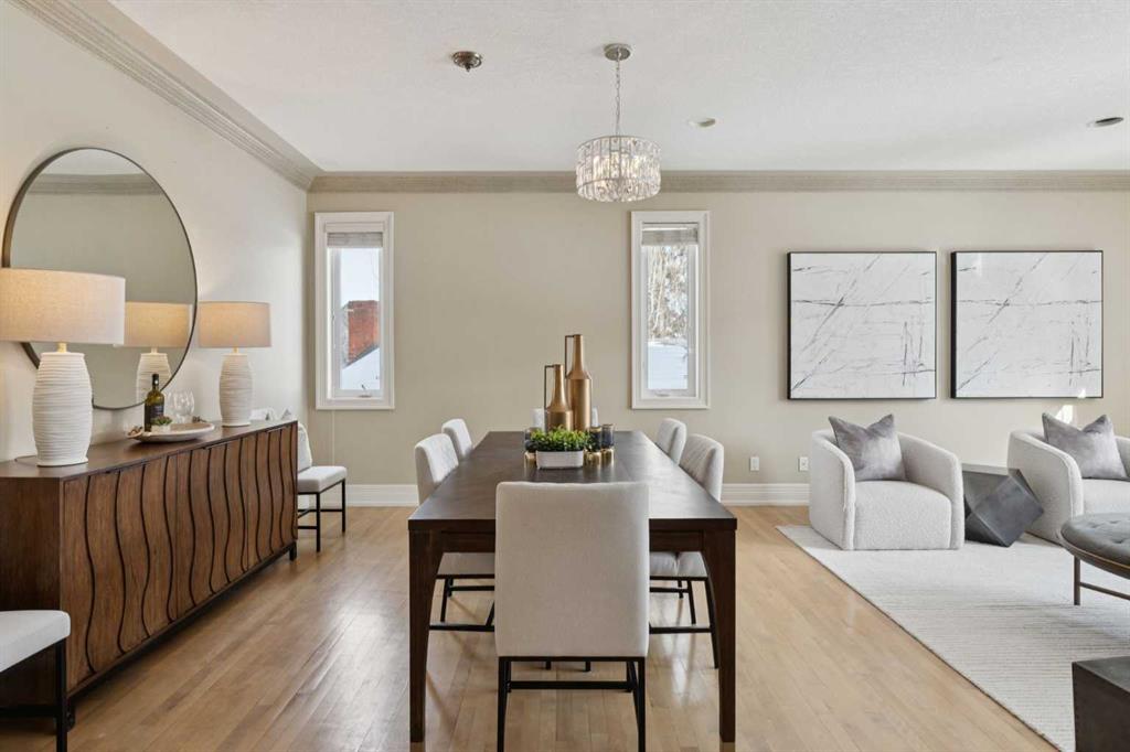 Sophisticated urban living finds its perfect expression in this thoughtfully designed home. It delivers over 2,500 square feet of bright and functional space across three inviting levels. The main floor creates an effortless flow between spacious living and dining areas. These spaces are highlighted by a striking feature fireplace wall and a dedicated TV nook, perfect for relaxed evenings or entertaining guests. Natural light pours in through oversized windows, enhancing the warm and welcoming atmosphere.At the centre of daily life is the chef’s kitchen, complete with a generous island ideal for preparing meals and gathering with friends. A sunny breakfast nook opens onto a private balcony with pleasant garden views below. Just off the kitchen sits a versatile family room, ideal as a cozy reading retreat or lively kids play area while meals are being prepared.Upstairs, the primary suite serves as a peaceful retreat featuring vaulted ceilings, a luxurious spa inspired ensuite, a spacious walk in closet, and impressive downtown city views. Two additional bedrooms and a well appointed main bathroom provide comfort and flexibility for family or visitors.The walk out basement adds valuable living space with a lower family room that opens directly onto a private terrace surrounded by low maintenance landscaping. This offers an ideal spot for outdoor relaxation or casual gatherings. Throughout the home, luxurious finishings shine through with granite counters, slate and hardwood flooring, in floor heating, and custom millwork that bring elegance and warmth to every room.A double attached garage offers convenient parking and extra storage. The walk out design maximizes light and usability on the lower level.Nestled in the vibrant Bankview community, this home sits just a short walk from the energy of 17th Avenue, filled with trendy shops, diverse restaurants, cafés, pubs, boutiques, and entertainment options. Enjoy easy access to local parks, community playgrounds and pathways. It delivers the ideal balance of inner city convenience and neighbourhood charm.