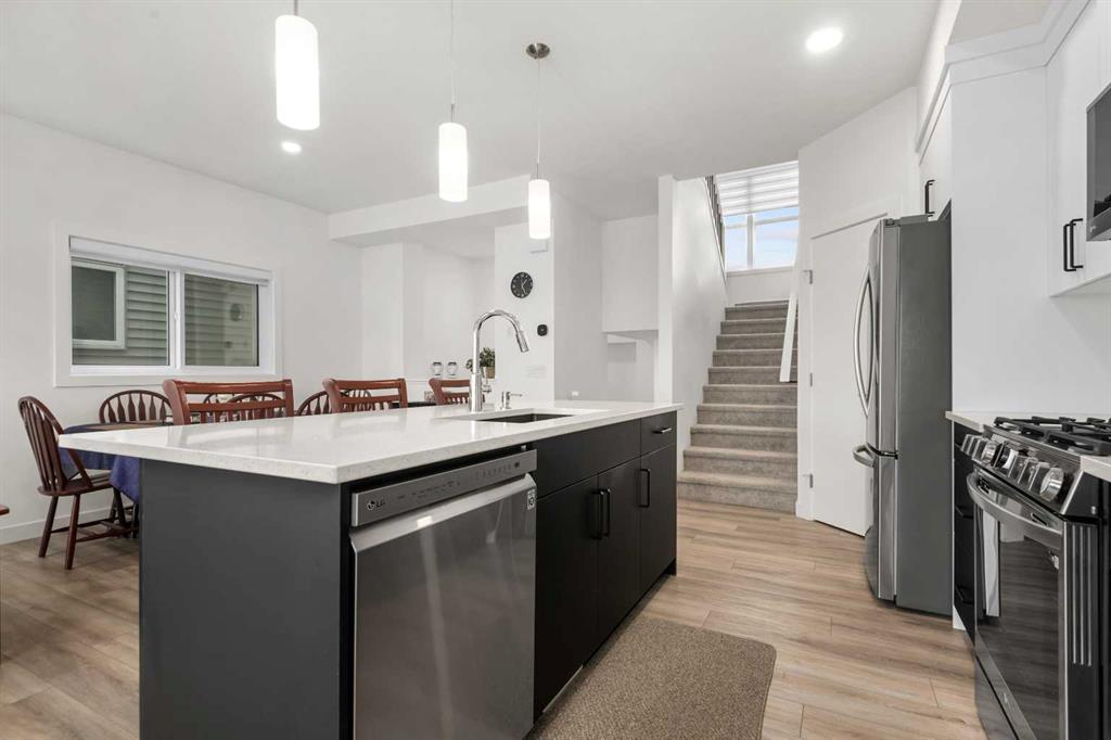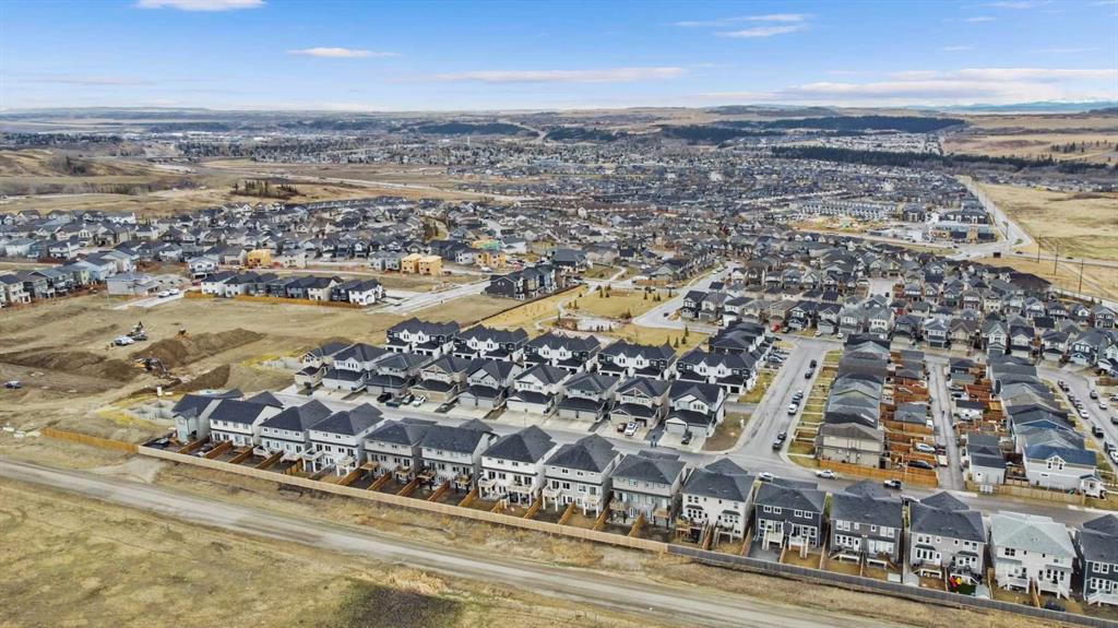 Experience elevated living in this meticulously crafted modern semi detached home, backing onto proposed park & recreation space offering over 2,200 sq ft of beautifully developed living space, stunning mountain views, walk-out finished basement, 3 spacious bedrooms, 3 bathrooms, and striking 9-foot ceilings throughout. With architectural details that balance sophistication and function, this home delivers comfort, style, and unbeatable value. As you step inside, you’re welcomed by a bright, open-concept main floor—ideal for both daily life and entertaining. The chef-inspired kitchen is a true centerpiece, featuring elegant quartz countertops, stainless steel appliances, a gas range, and a generous central island perfect for prepping, dining, and gathering. The adjacent living room is anchored by a beautiful electric fireplace and is bathed in natural light thanks to oversized windows that frame unobstructed views of the mountains and open plains. Step out onto the private back deck to spectacular mountain views to the west and open fields to the north, perfect for BBQs or quiet evenings soaking in the scenery. Upstairs, the home continues to impress with a stunning bonus room showcasing soaring ceilings and custom-built-in cabinetry—perfect as a home office, lounge, or creative space. The expansive primary suite offers a tranquil retreat, complete with a sleek 3-piece ensuite and a large walk-in closet. Two additional well-sized bedrooms and a full bathroom offer comfort and flexibility for family or guests. The fully developed walkout basement adds incredible versatility to this home, with large windows, a stylish wet bar with a full size fridge, and custom cabinetry, it’s the ideal space for a home theater, guest suite, or secondary living area. The walkout design opens to a private grade-level concrete patio and fully fenced yard. A large furnace/storage room offers additional practicality, with the option of adding a bathroom with rough in plumbing. Location is key, heritage hills offer an abundance of green space walking/bike paths and close proximity to schools, parks and all amenities with easy access to highway 1A leading you to the mountains in less than an hour. You’re going to love this home, perfectly blending modern elegance with functional design and breathtaking views, this home is ready to impress. Book your viewing today!