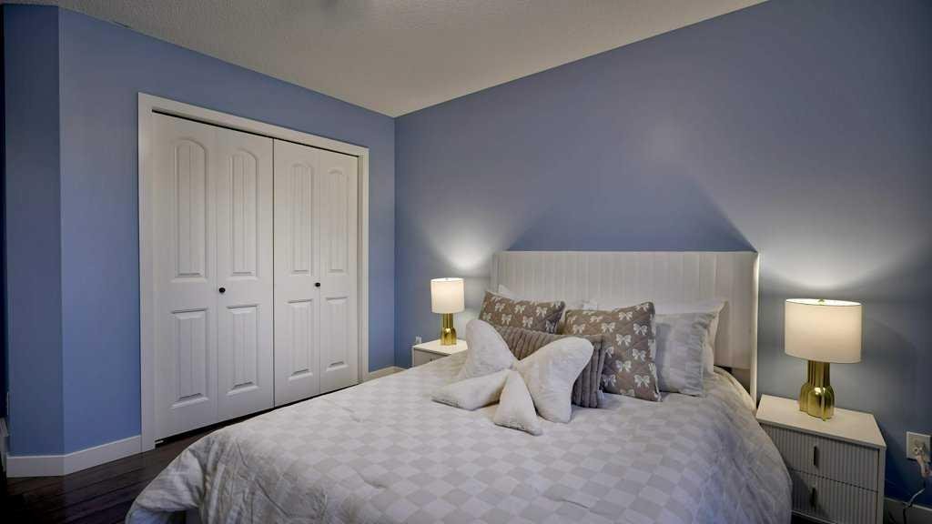 Welcome to this stunning five-bedroom, three-and-a-half-bath home in the highly sought-after community of Panorama Hills. The unique main-floor primary suite is perfect for those seeking single-level living, enhanced mobility, or added privacy away from the kids. The spacious king-size suite features a four-piece ensuite and a walk-in closet. The open-concept main living area features a large kitchen island with extra storage and a pantry, open to the dining area and living room with a cozy three-sided fireplace — ideal for entertaining or family gatherings. Enjoy the convenience of a main-floor laundry room with sink, along with thoughtful upgrades throughout — brushed bronze fixtures, designer lighting, central air conditioning, and on-demand hot water. French doors open to a large west-facing backyard with a two-tier deck, gazebo, and storage shed, backing directly onto peaceful green space — perfect for relaxing evenings or entertaining guests. Upstairs, you’ll find a massive bonus room, two oversized bedrooms, and a four-piece bath. The home features no carpet throughout, offering a clean, modern look and easy maintenance. The fully finished lower level includes a generous family room, two large bedrooms, flex room, and four-piece bath. Enjoy a large dedicated storage room along with a roomy utility area offering ample extra storage for seasonal items and household essentials. Recent Upgrades: Brand new roof, soffits, and siding (2025); newer patio doors; both upstairs bedroom windows replaced; new furnace and on-demand hot water tank (2023); new basement flooring; upgraded bathroom fans; new spring on garage door; and all new exterior light fixtures. Fantastic location on a quiet street—just a short walk to both the elementary and junior high schools, with a park and playground only steps away. The west-facing backyard backs directly onto a tranquil greenspace with a walking path, offering privacy and beautiful sunsets. This is truly the home you’ll want to call your own. OPEN HOUSE SUNDAY NOV 16th 1-3 pm.