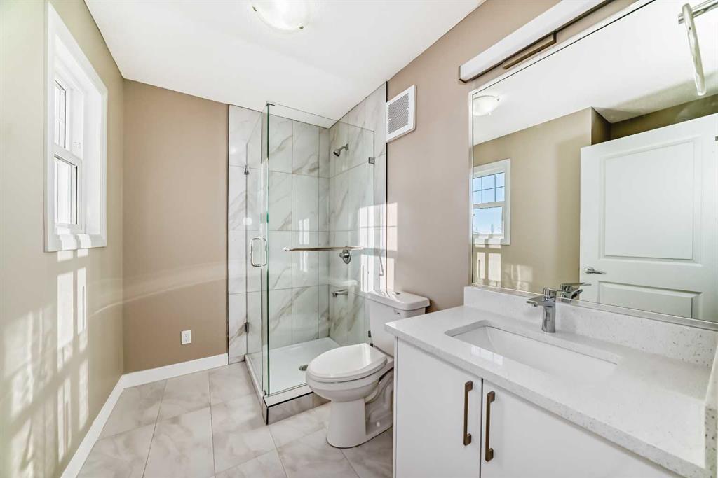 Welcome to 2159 Hillcrest Green SW, Airdrie, perfectly situated on a quiet, family-friendly cul-de-sac in the highly sought-after Hillcrest community. This thoughtfully designed open-concept home offers over 2,350 sq. ft. of developed living space above grade, plus a fully permitted legal basement suite, making it ideal for large families, multi-generational living, or investors seeking rental income. The main floor features 9-foot ceilings, hardwood flooring, and a bright, airy layout. The welcoming foyer opens to a cozy living room with a gas fireplace and large windows, perfect for relaxing or entertaining. The modern kitchen is equipped with quartz countertops, contemporary cabinetry, a central island, and a walk-in pantry, offering excellent storage and workspace. The dining nook leads to a low-maintenance 10’ x 16.5’ deck overlooking the private backyard. Also on the main level has bedroom (ideal for a home office or bedroom), a convenient half bath, and a functional mudroom with access to the 21’ x 21.5’ double attached garage. Storage is exceptional with multiple closets, including a large coat closet off the garage, a front entry closet, and an additional general-use storage closet. Upstairs, you’ll find a spacious primary retreat with a 5-piece ensuite featuring a soaker tub, double vanity, and walk-in closet. There are three additional generously sized bedrooms, including two connected by a Jack & Jill bathroom, plus an additional full bathroom. A bonus/family room and upper-floor laundry provide added comfort and convenience for growing families. A standout feature of this home is the fully finished, fully permitted legal basement suite, built to City of Airdrie standards, offering two large bedrooms, a family room, modern kitchen, full bathroom, separate laundry, separate furnace and heating system, separate entrance, and large windows providing excellent natural light. This suite is completely rental-ready, offering a stress-free opportunity to live upstairs while generating income, or an ideal solution for extended family living. The backyard is complete with a deck and fire pit, perfect for outdoor enjoyment. Located within walking distance to Northcott Prairie Elementary School, Coopers Promenade, parks, playgrounds, shopping, and with easy access to major roadways, this home combines space, functionality, and an unbeatable location. A rare opportunity to own a move-in-ready home with a legal basement suite in one of Airdrie’s most desirable communities.